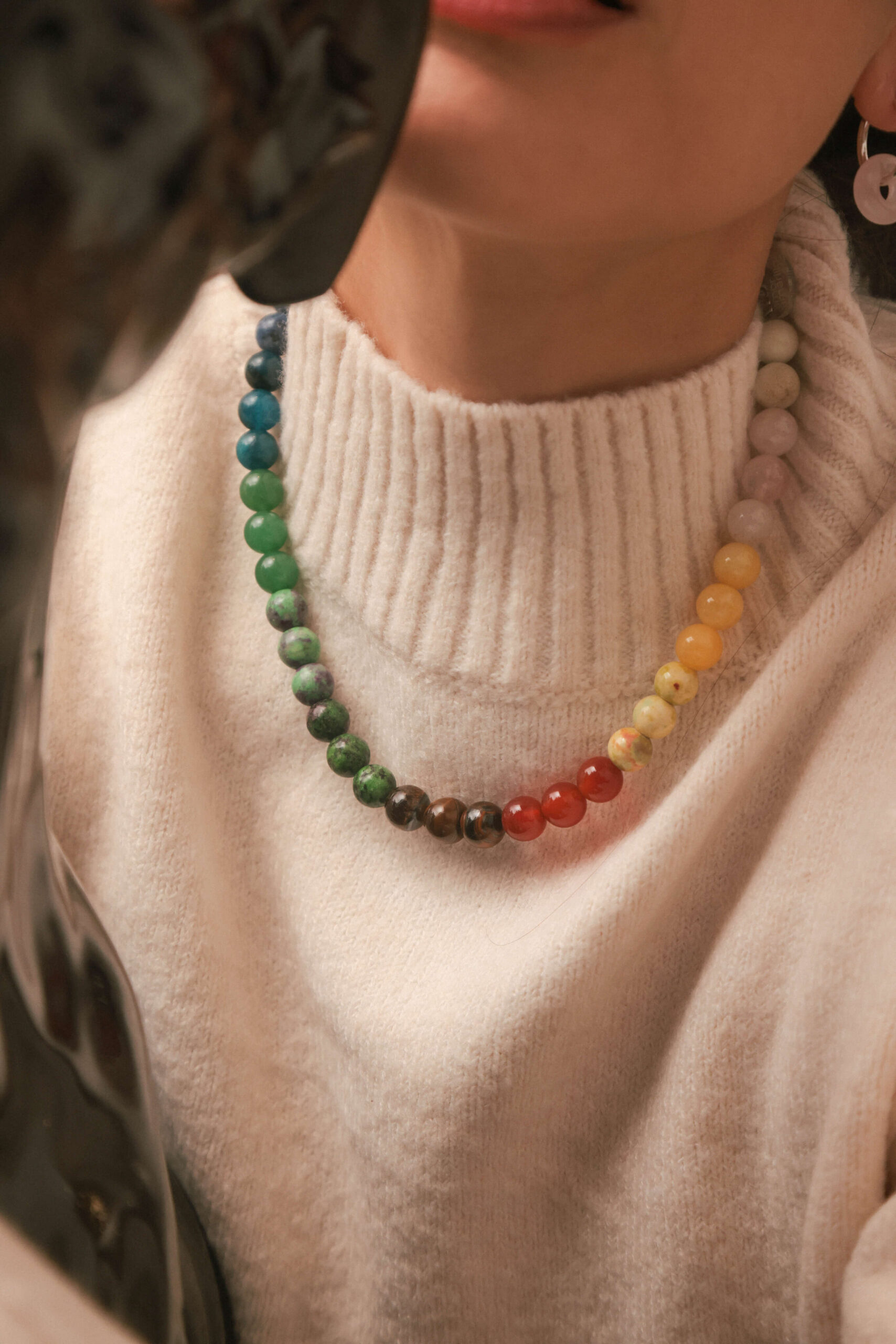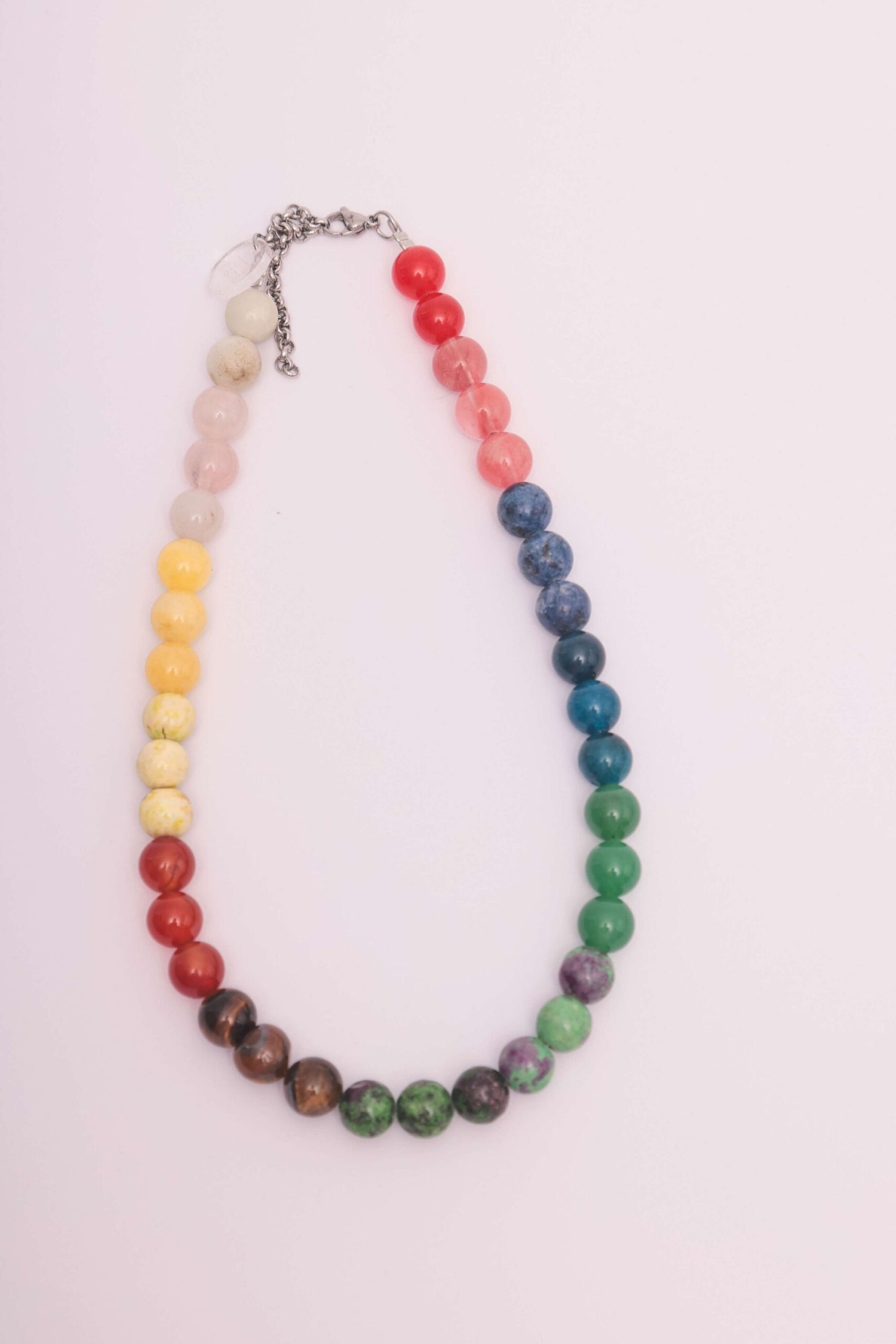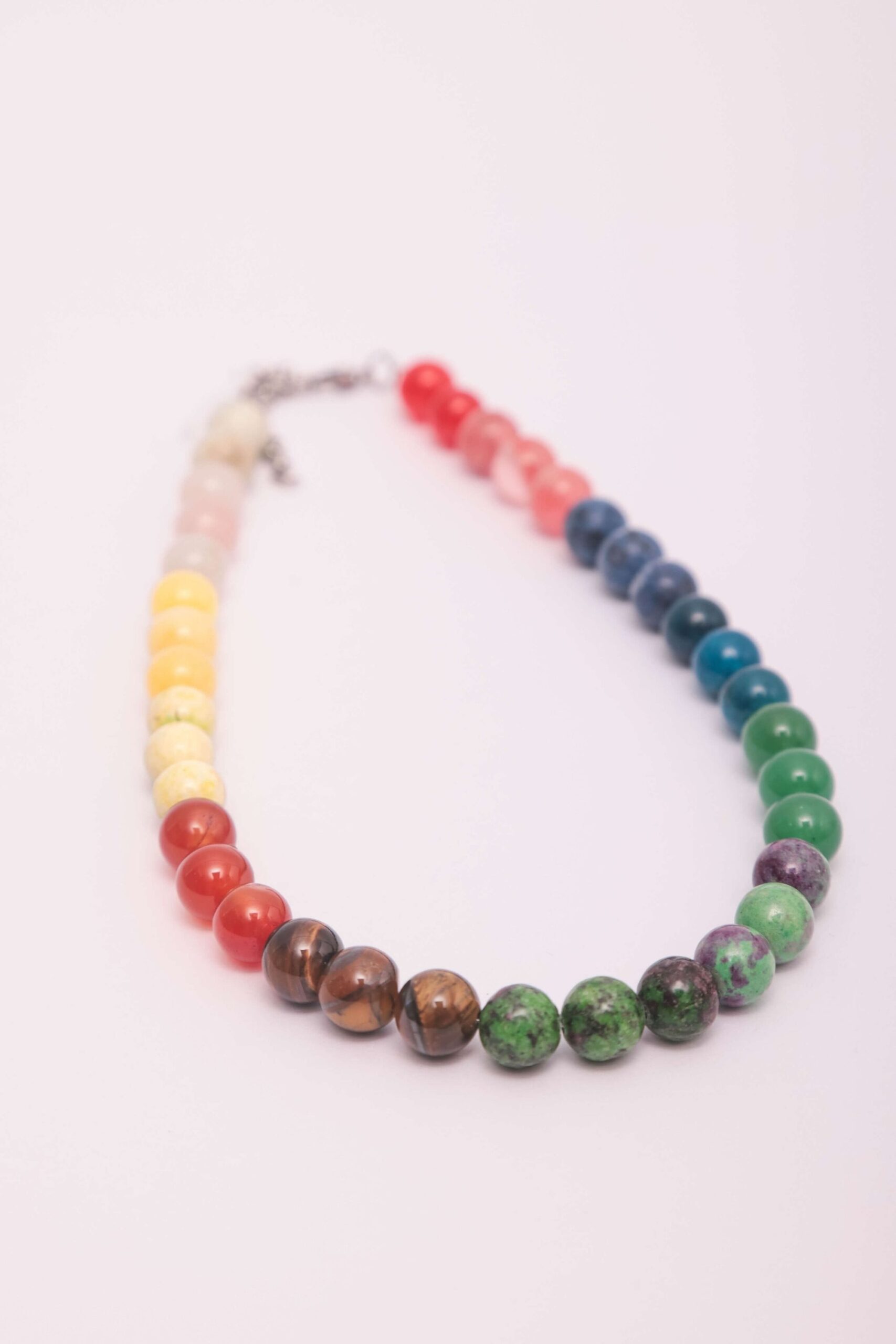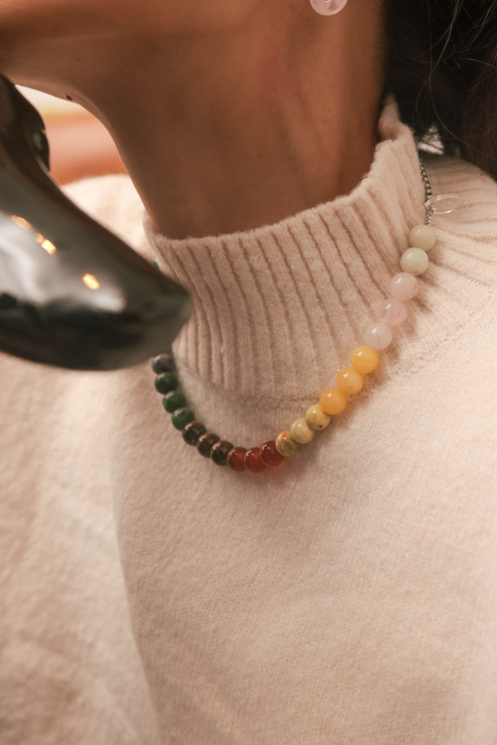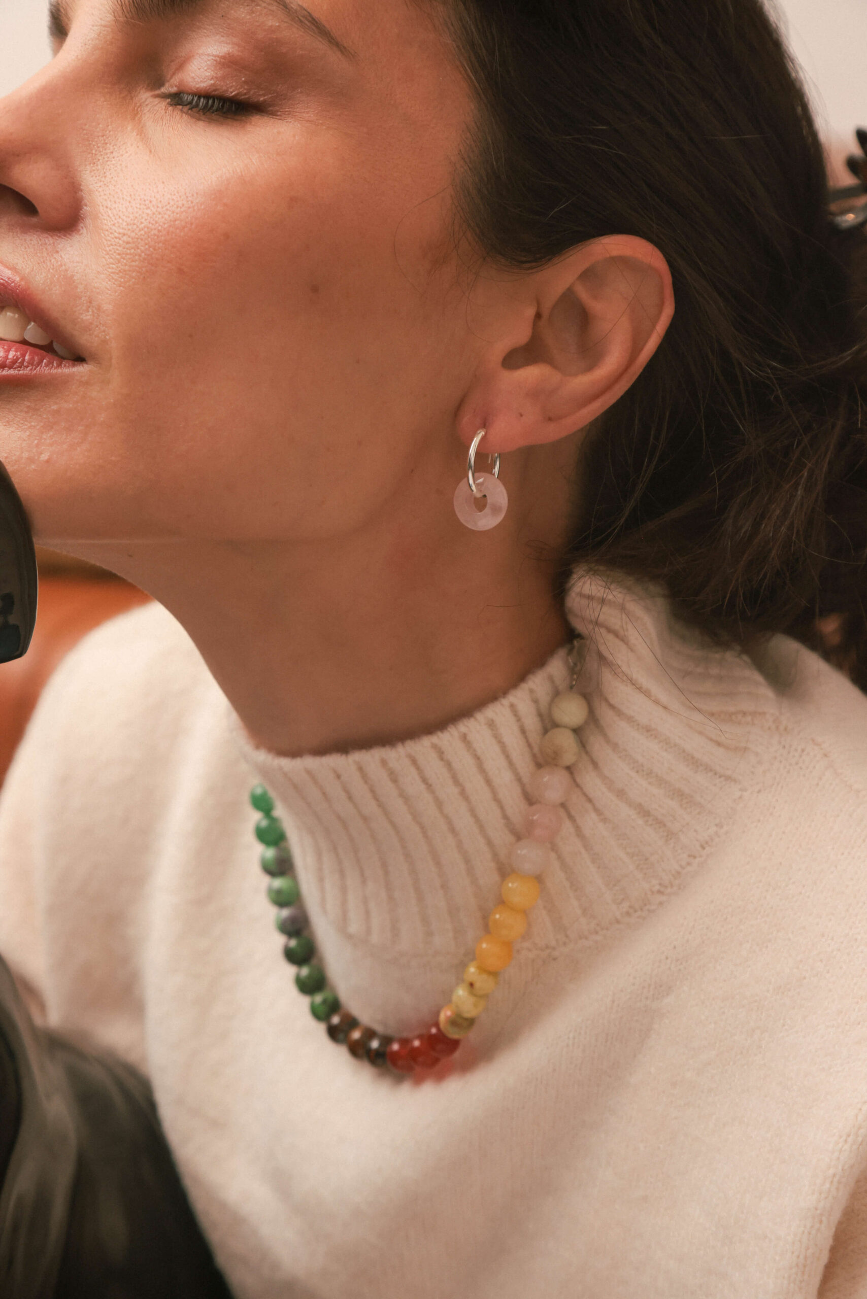 Materiales: Piedras minerales naturales ágatas, cuarzo rosa, ojo de tigre, jade, sodalita.