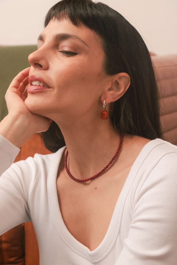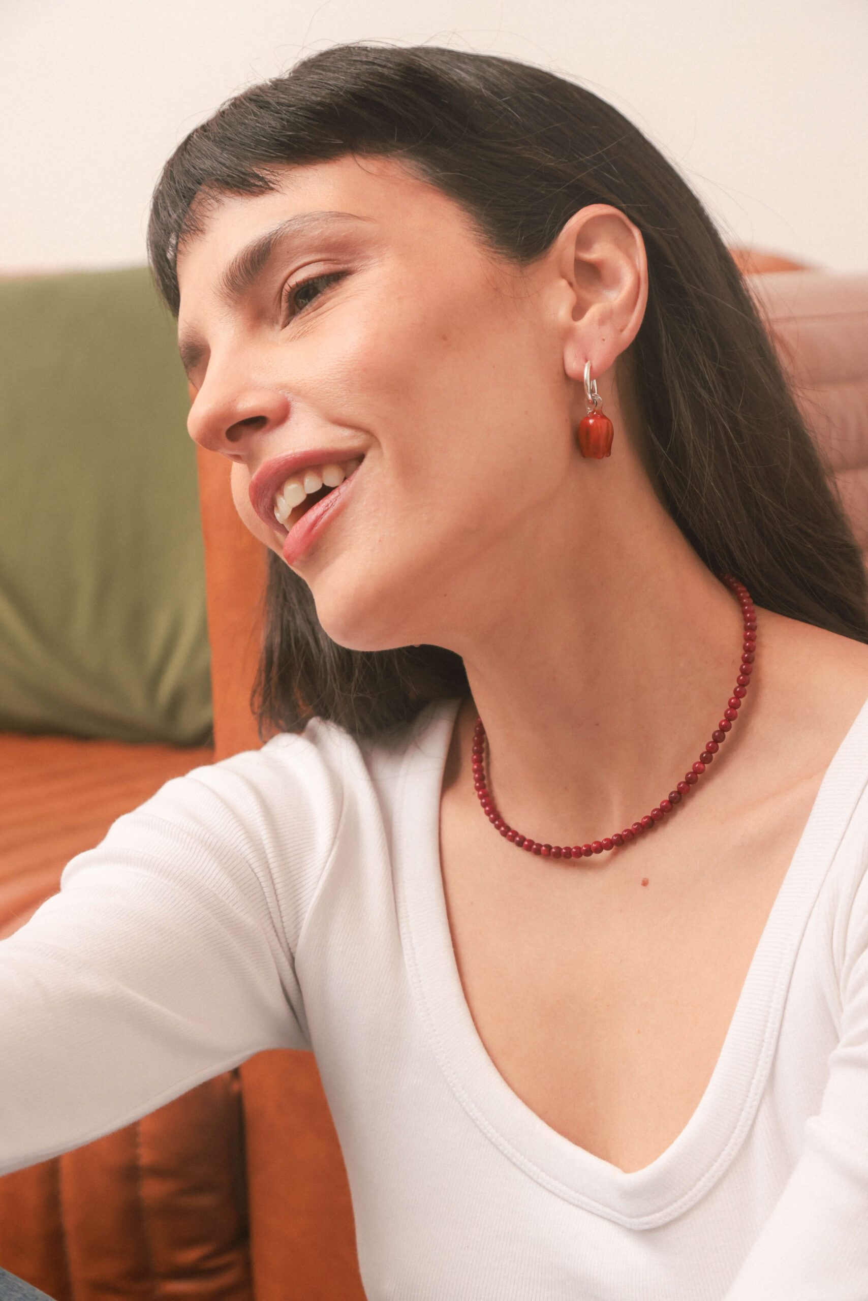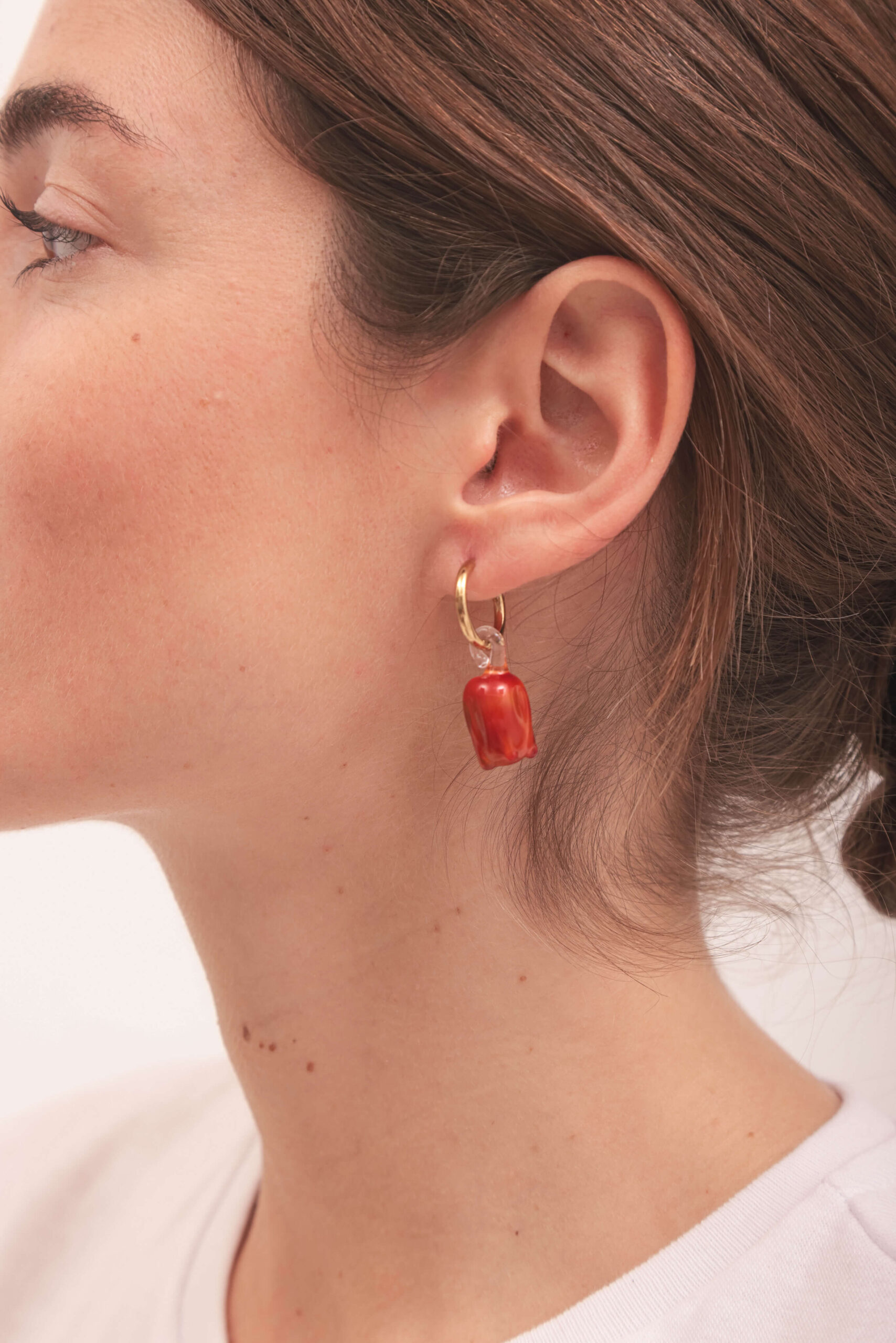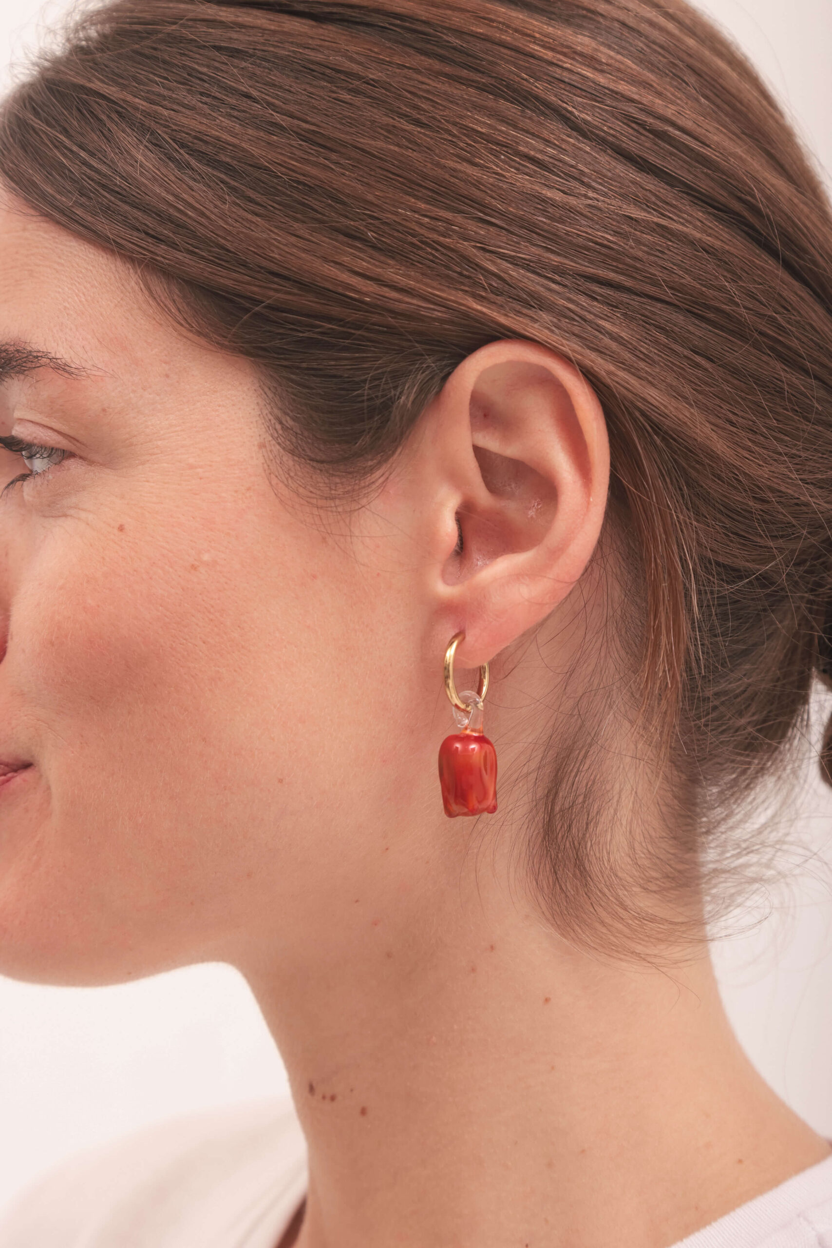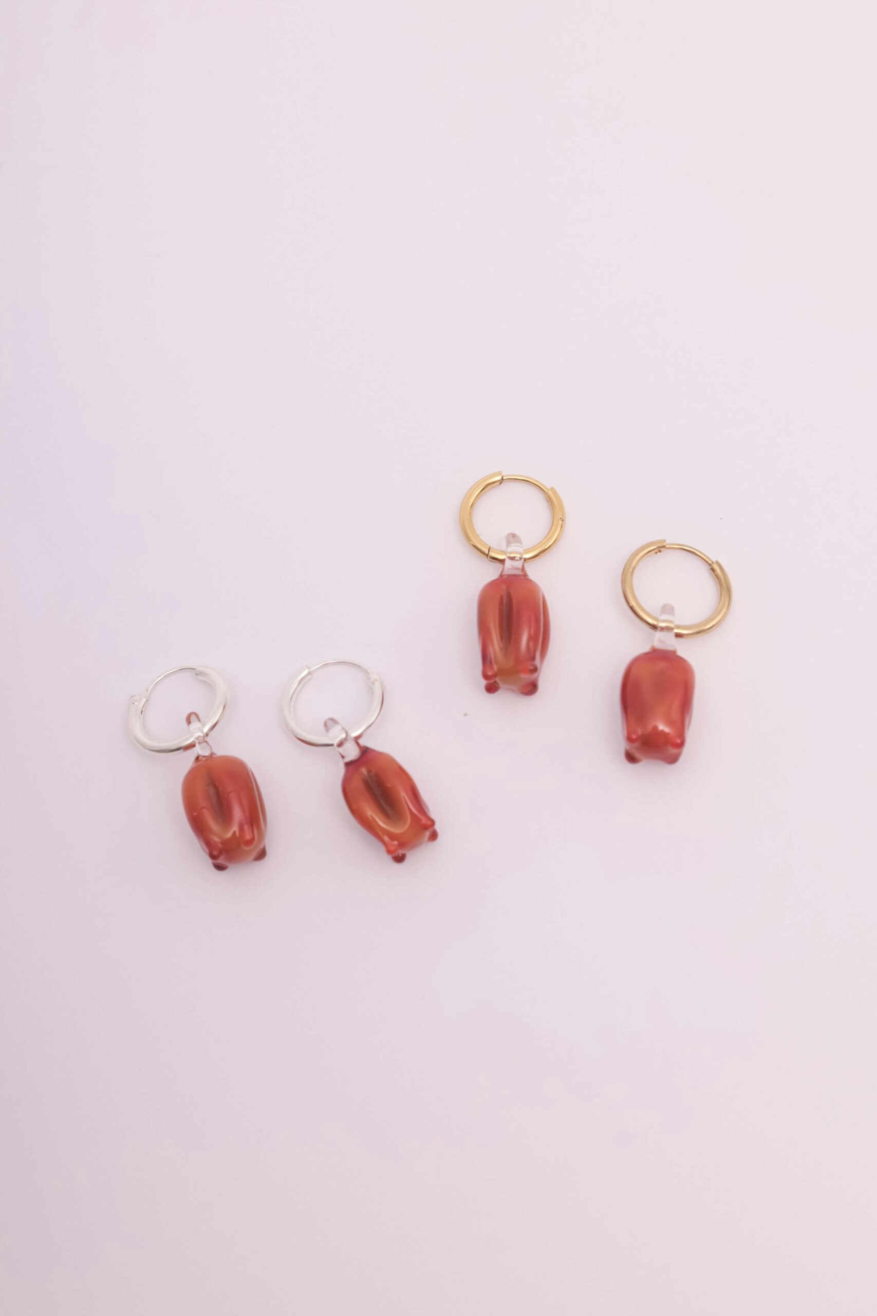 Aros. Par de argollas de plara 925 o argollas de acero quirúrgico dorado con dije de vidrio murano.