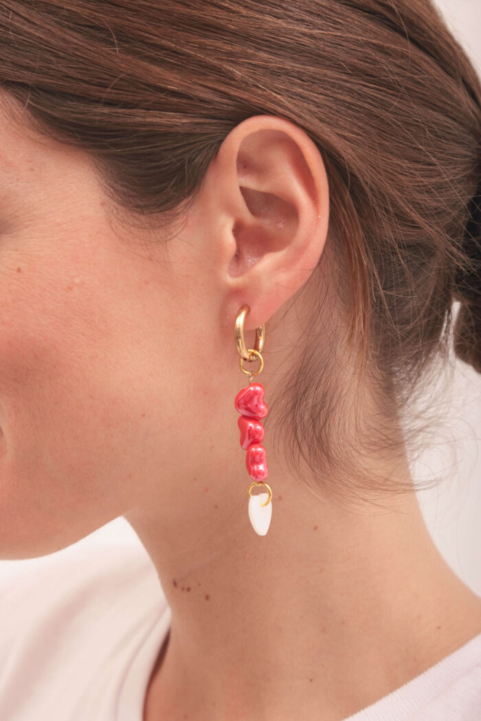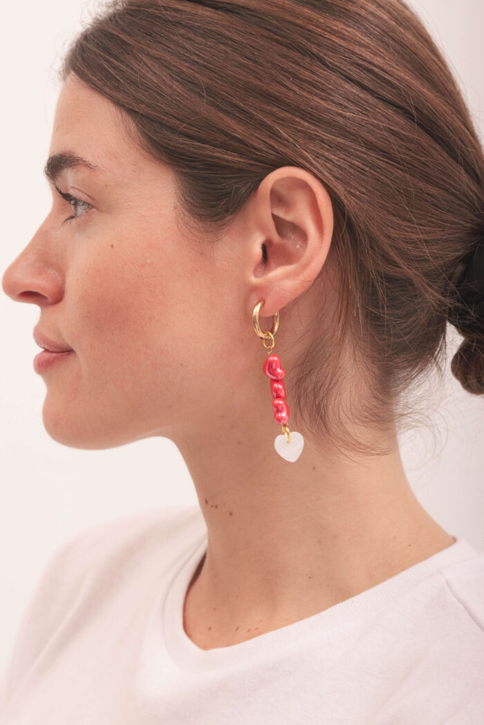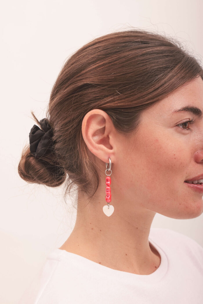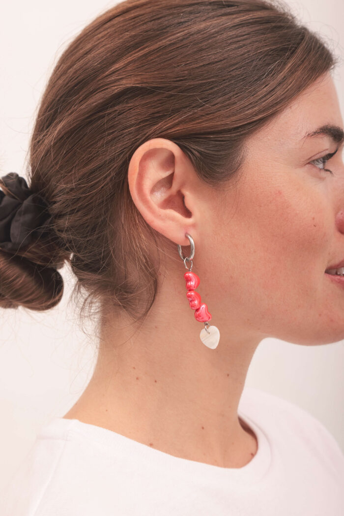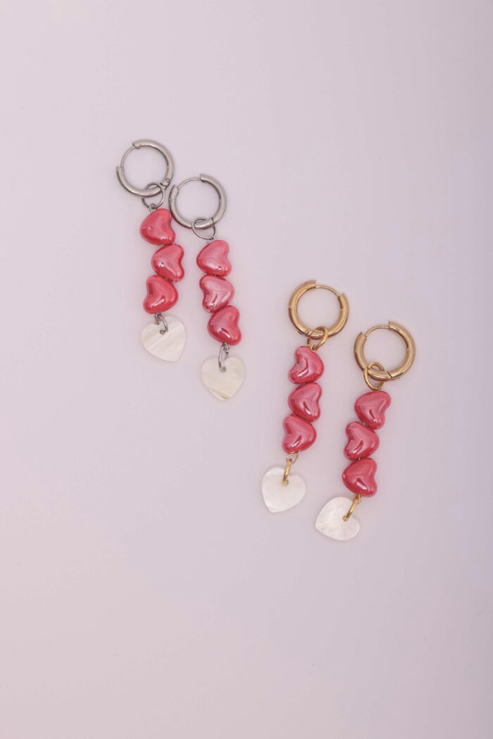 Aros. Par de argollas de acero quirúrgico y argollas de acero quirúrgico con corazoncitos de cerámica.