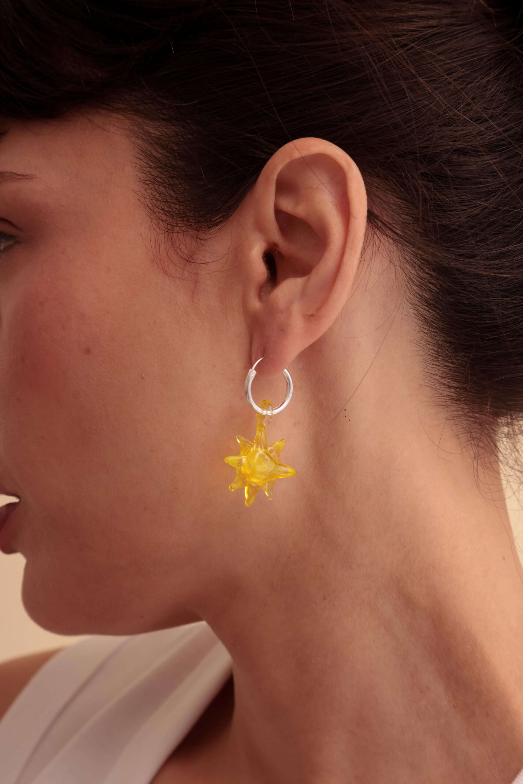 Aros. Par de argollas de plata 925 y dije de vidrio murano.