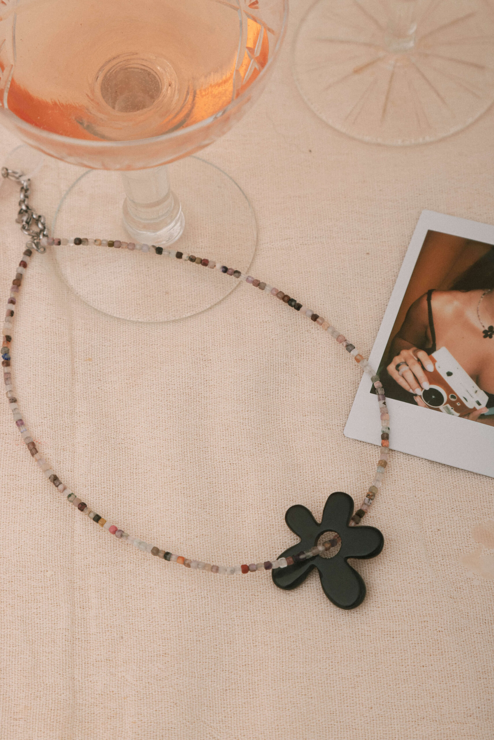 Materiales: Piedras minerales naturales turmalina y flor de resina. La flor se puede sacar y poner 🙂