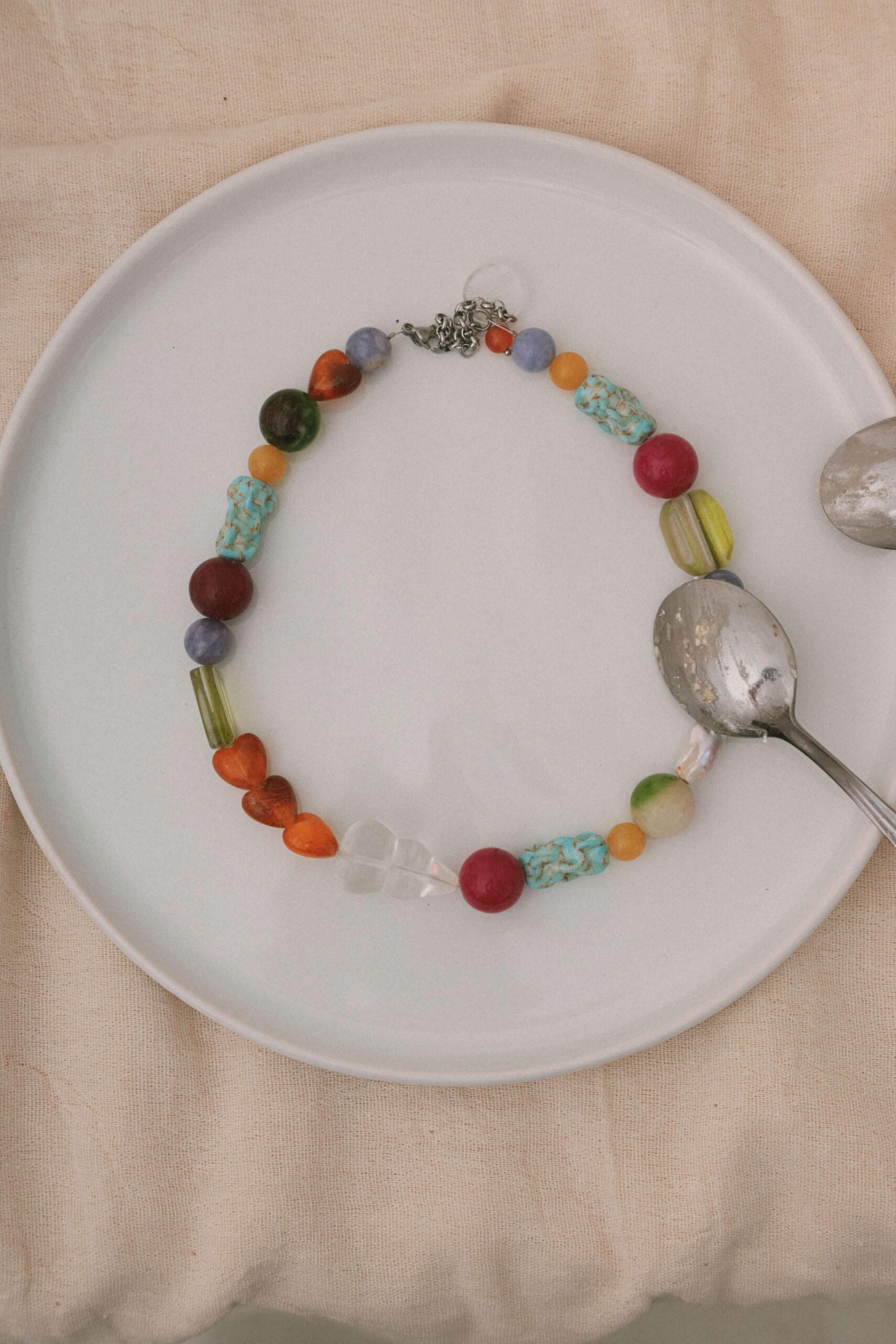 Materiales: Piedras minerales naturales ágatas, cuarzo cristal, perla de río, vidrio.