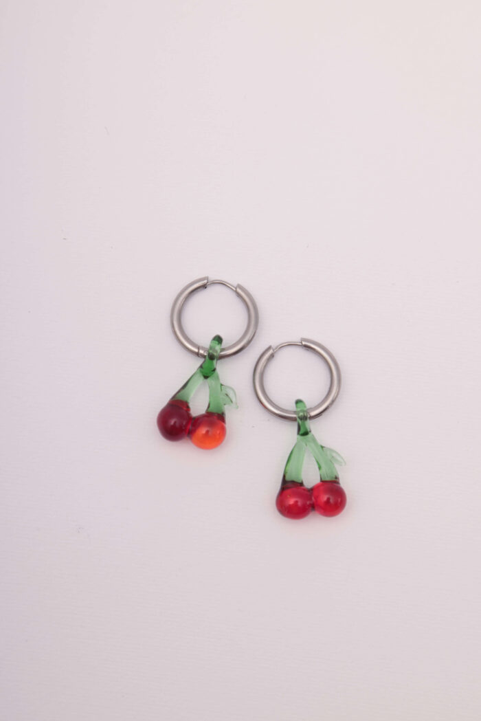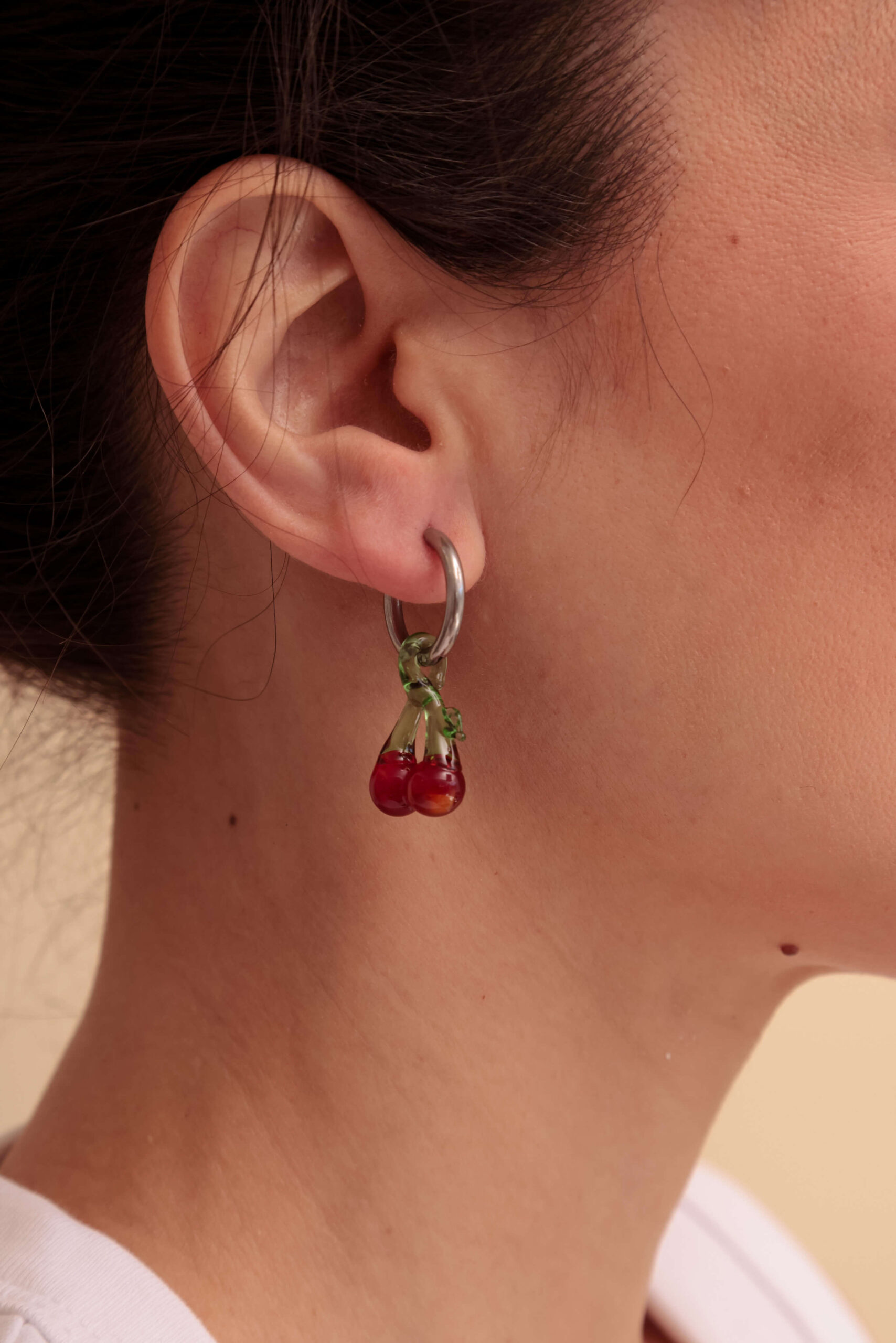 Aros. Par de argollas de acero quirúrigo y dije de vidrio murano.