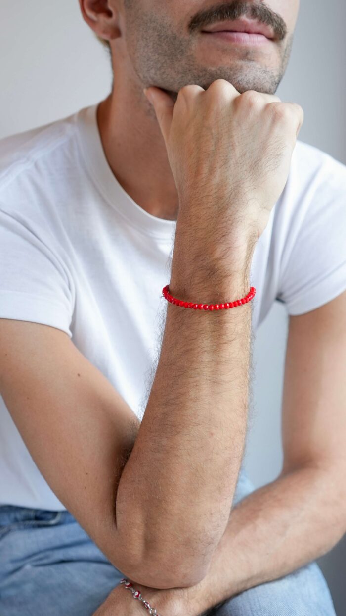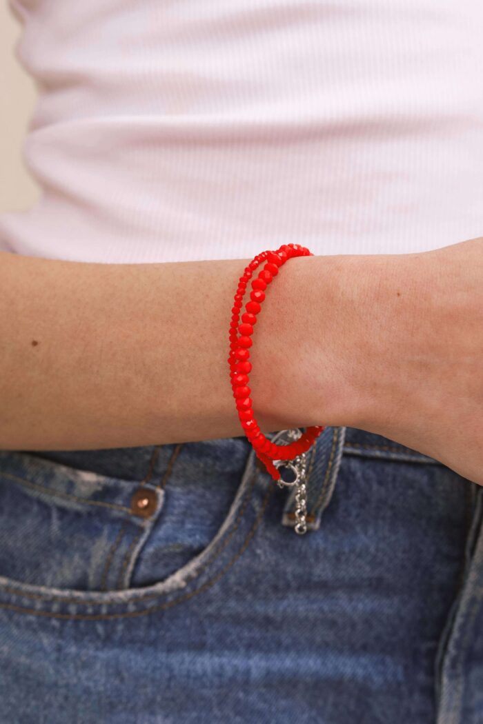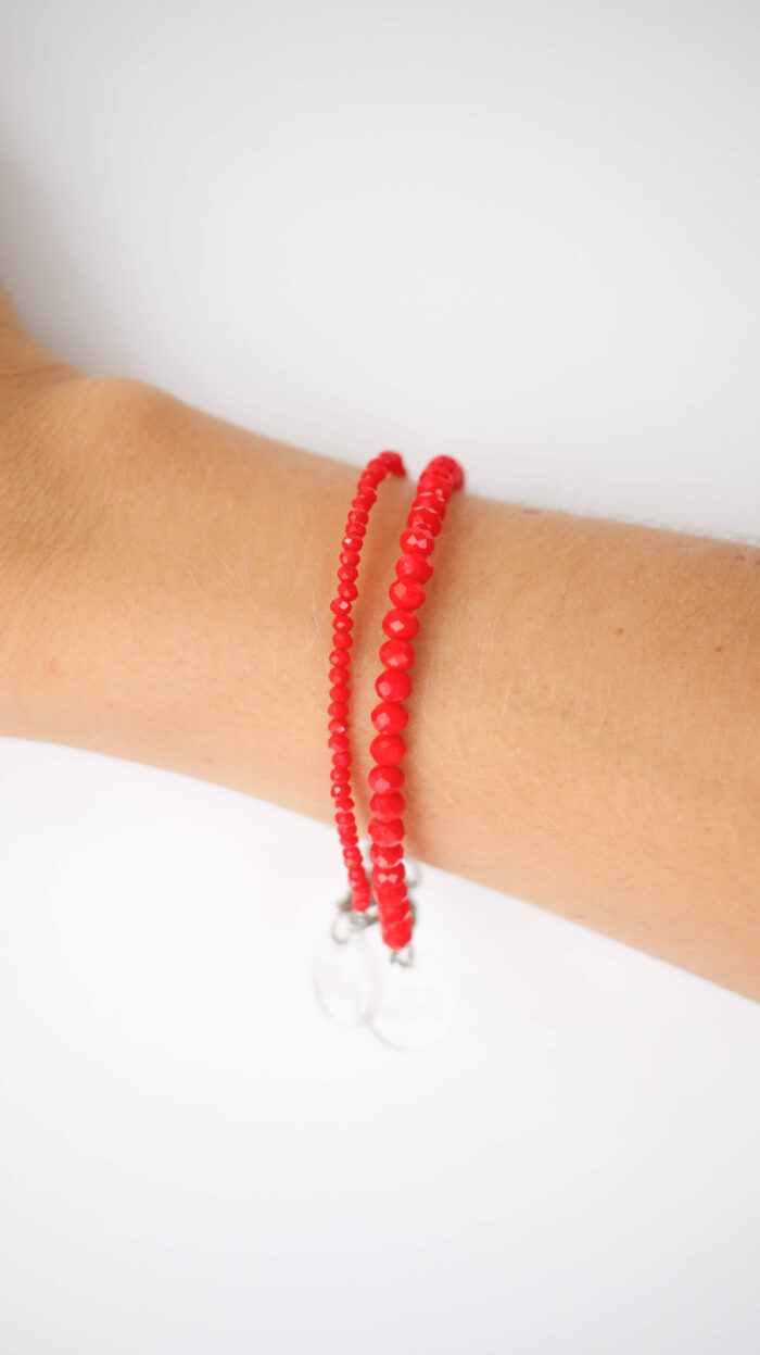 Materiales: Vidrio facetado. Cadena de alargue, argollas y cierre de acero quirúrgico.