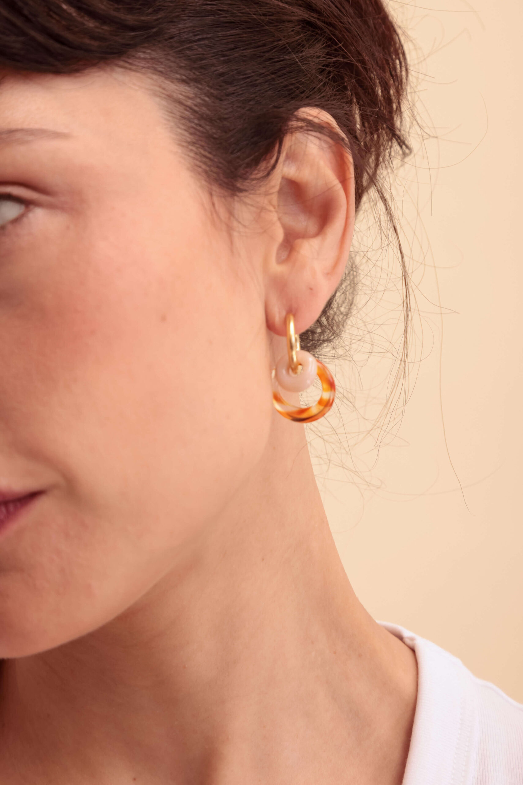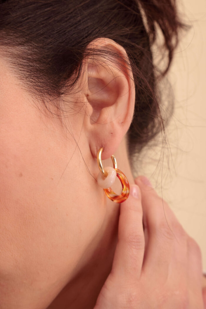 Aros. Par de argollas de acero quirúrigo con baño dorado y donas de vidrio super livianas.