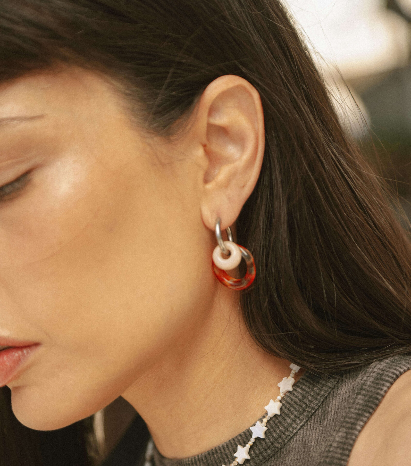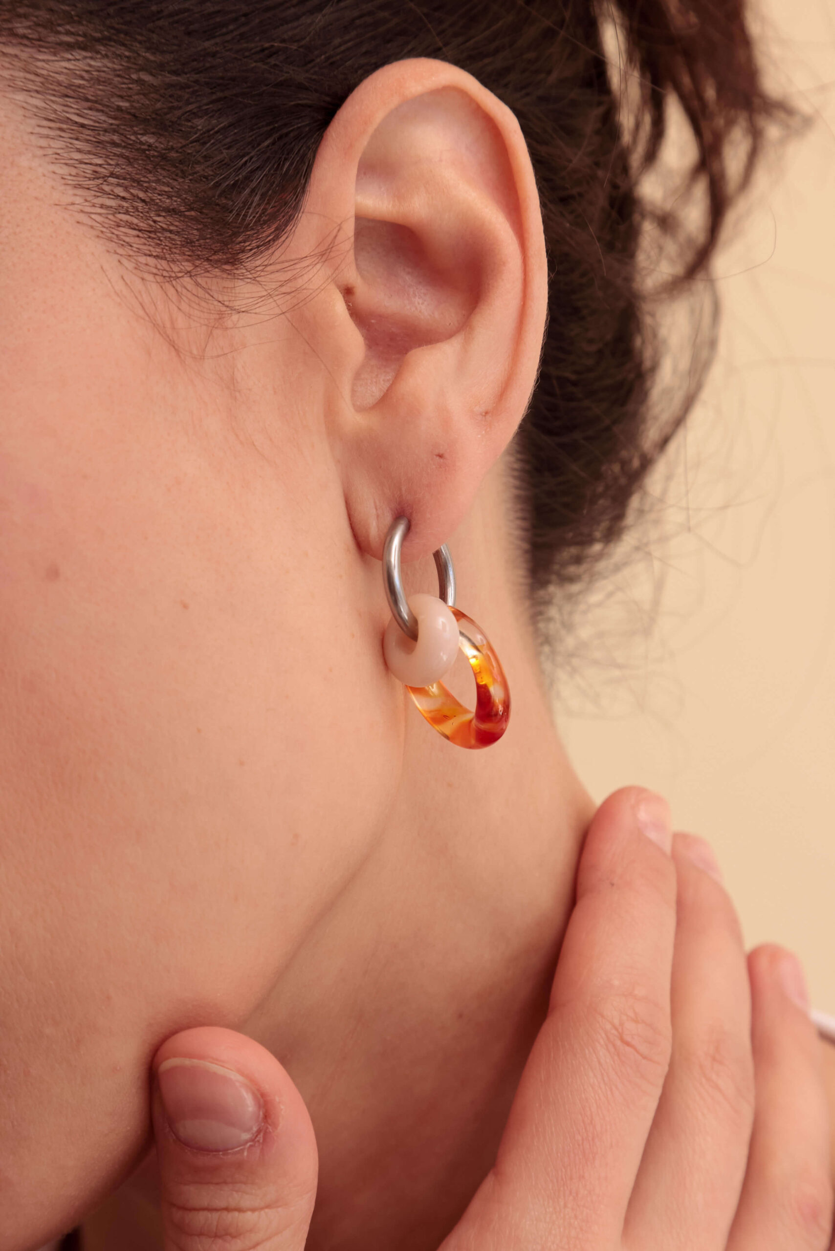 Aros. Par de argollas de acero quirúrigo y donas de vidrio super livianas.