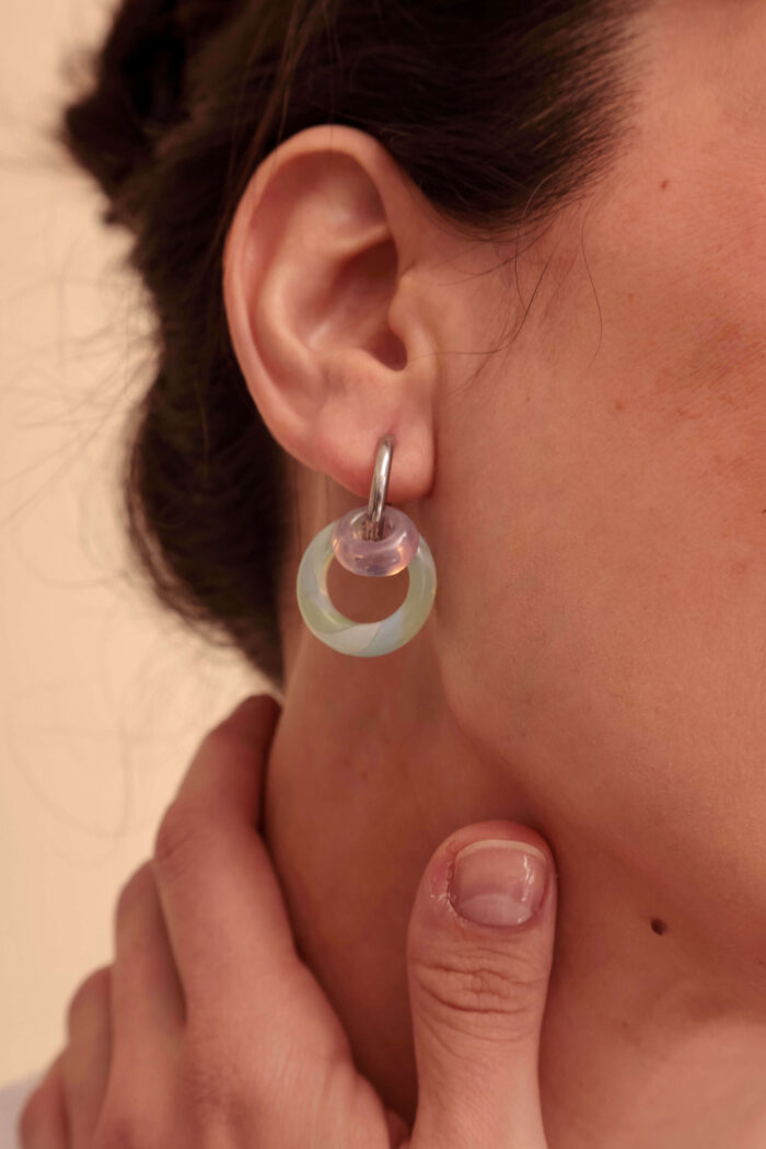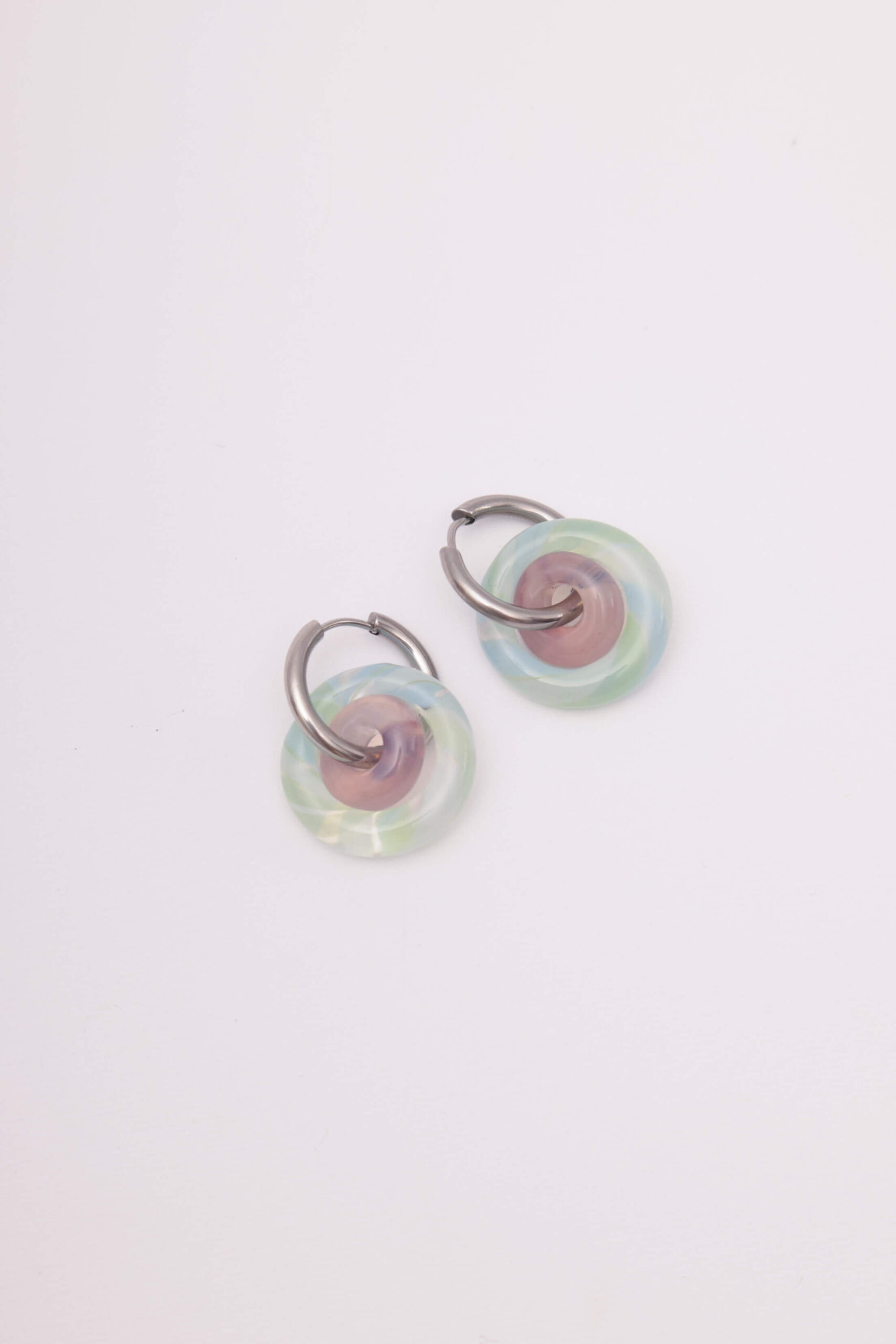Aros. Par de argollas de acero quirúrigo y donas de vidrio super livianas.