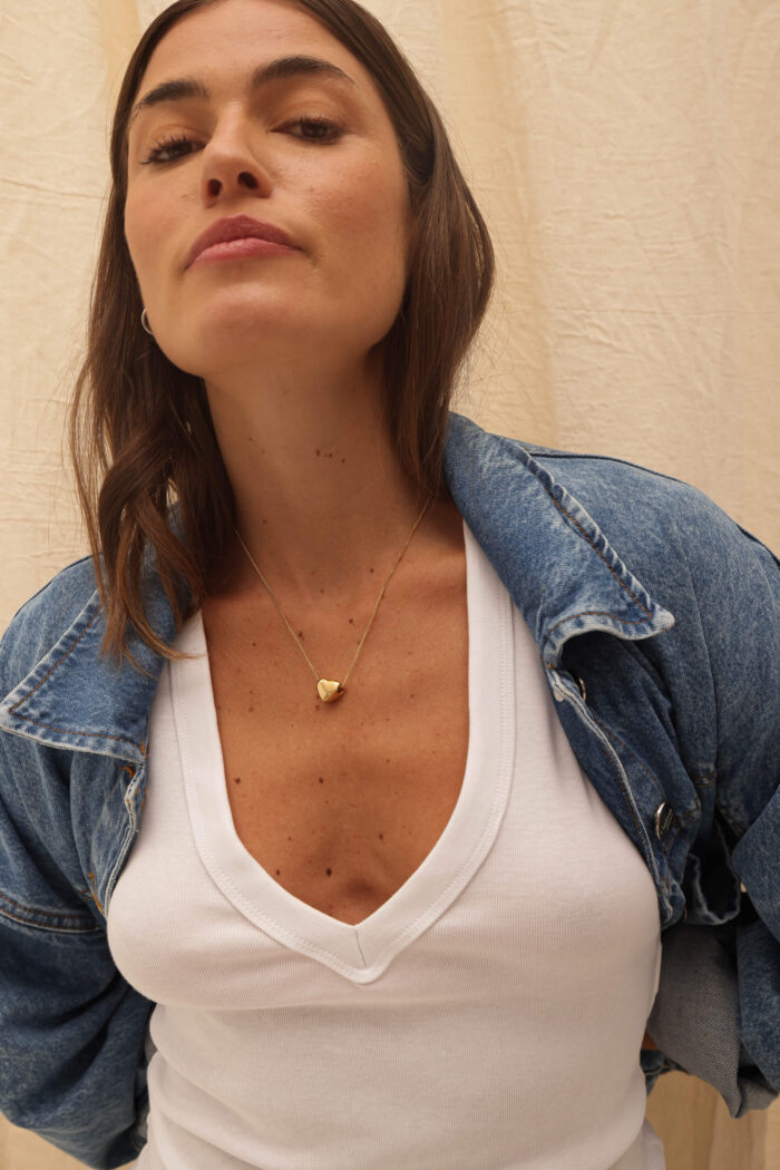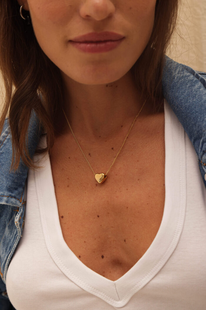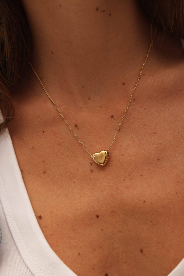 Materiales: Cadena de acero quirúrgico con baño dorado. Cadena de extensión, argollas y cierre y dije corazón de acero quirúrgico con baño dorado