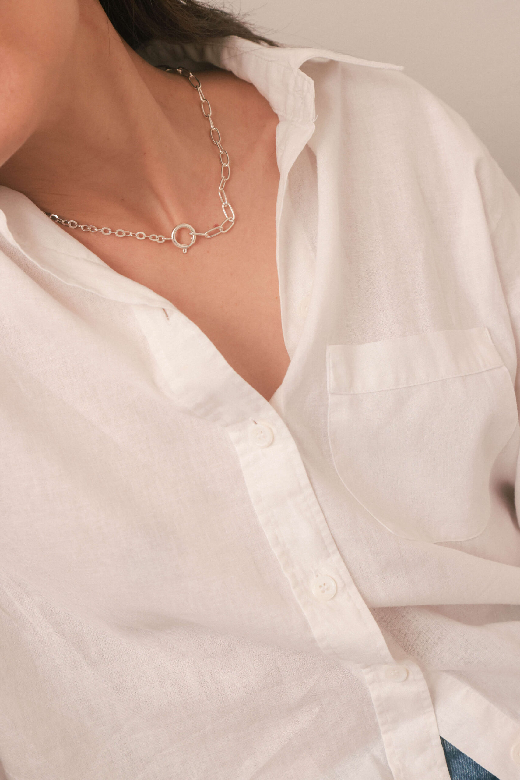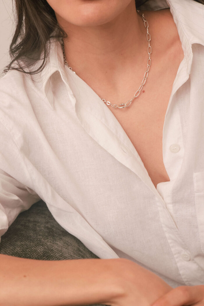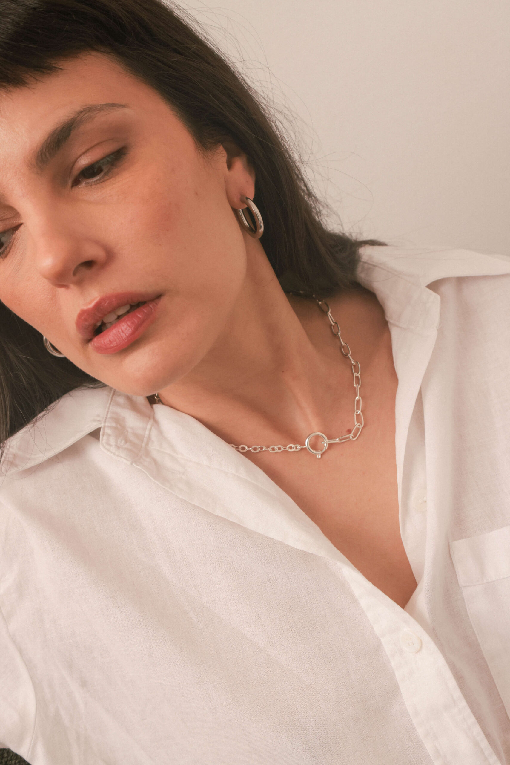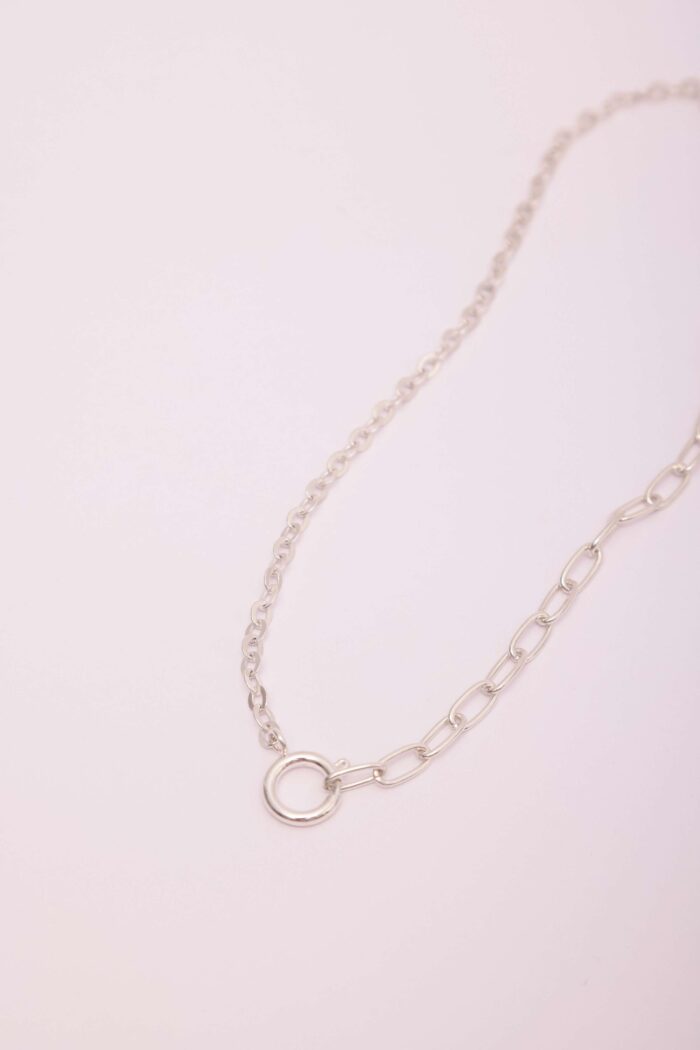 Cadena básica con dos grosores. Podes usar el gancho adelante o atrás y tener dos versiones de un solo collar.