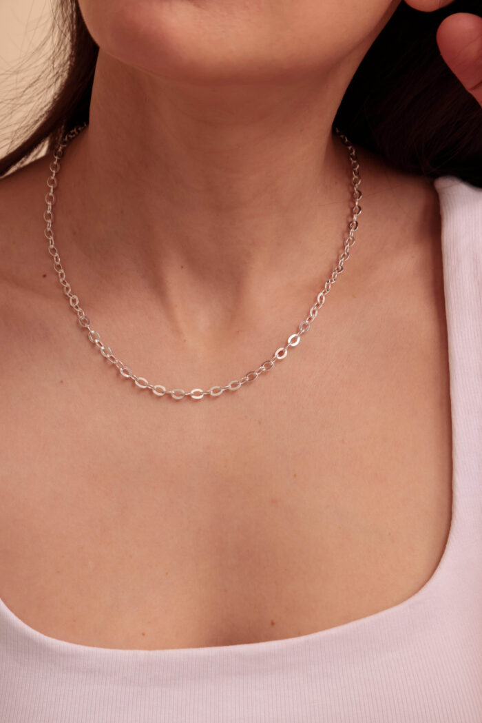 Collar de bronce con baño de plata 925 Largo: 45 cm aprox. Cuidados: Evitá mojarlo con agua, perfumes o alcoholes para que el brillo permanezca intacto.