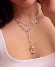 Materiales: Cordón de hilo de seda 140 cm. Dije de vidrio murano.