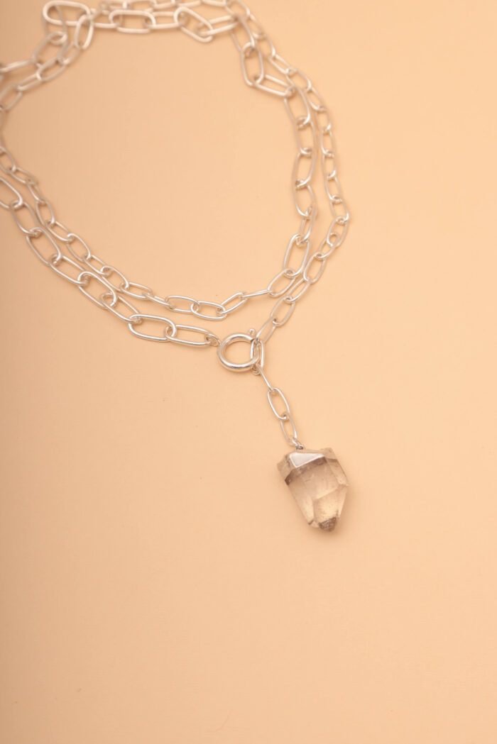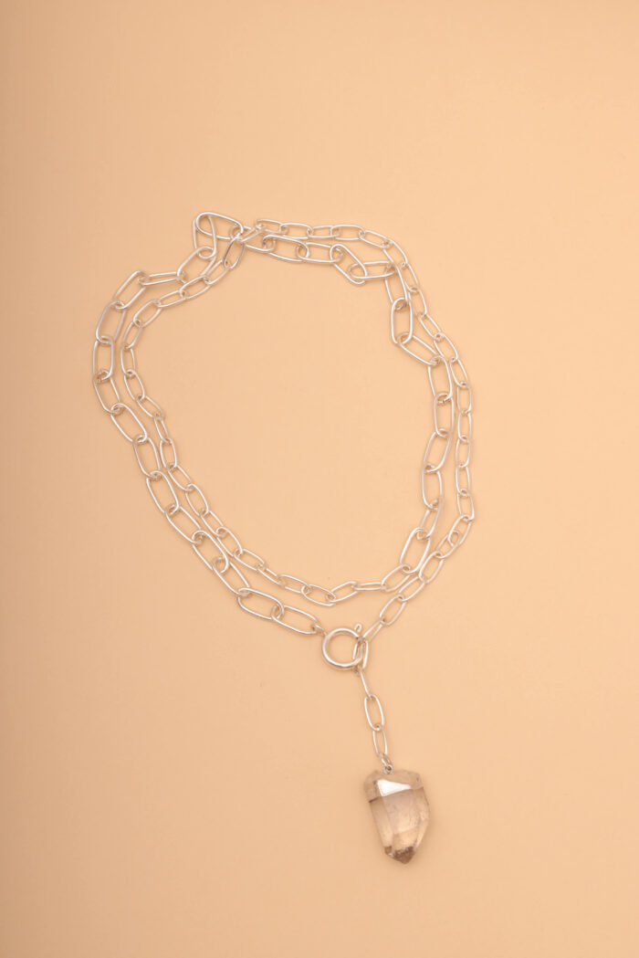 Collar de bronce con baño de plata y cuarzo cristal.