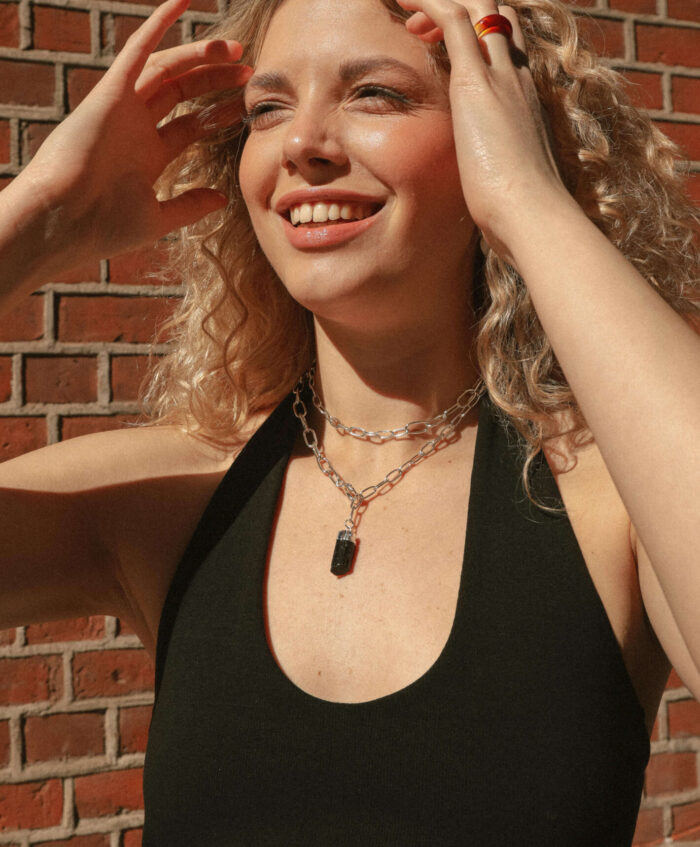 Un collar doble divino con dije de turmalina, para tu protección contra las malas energías.