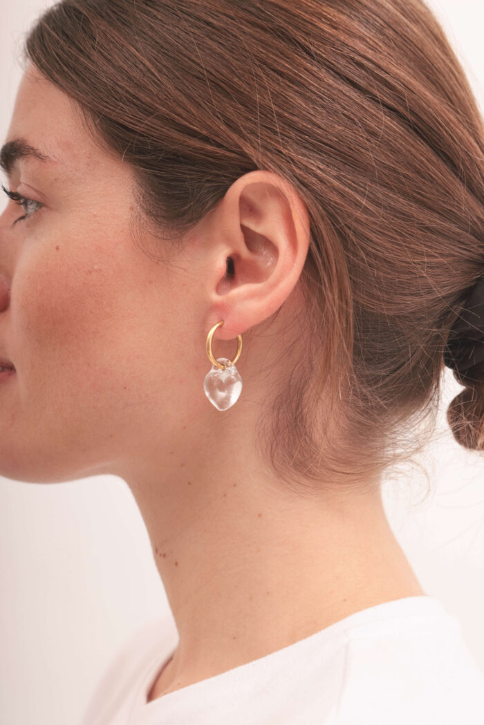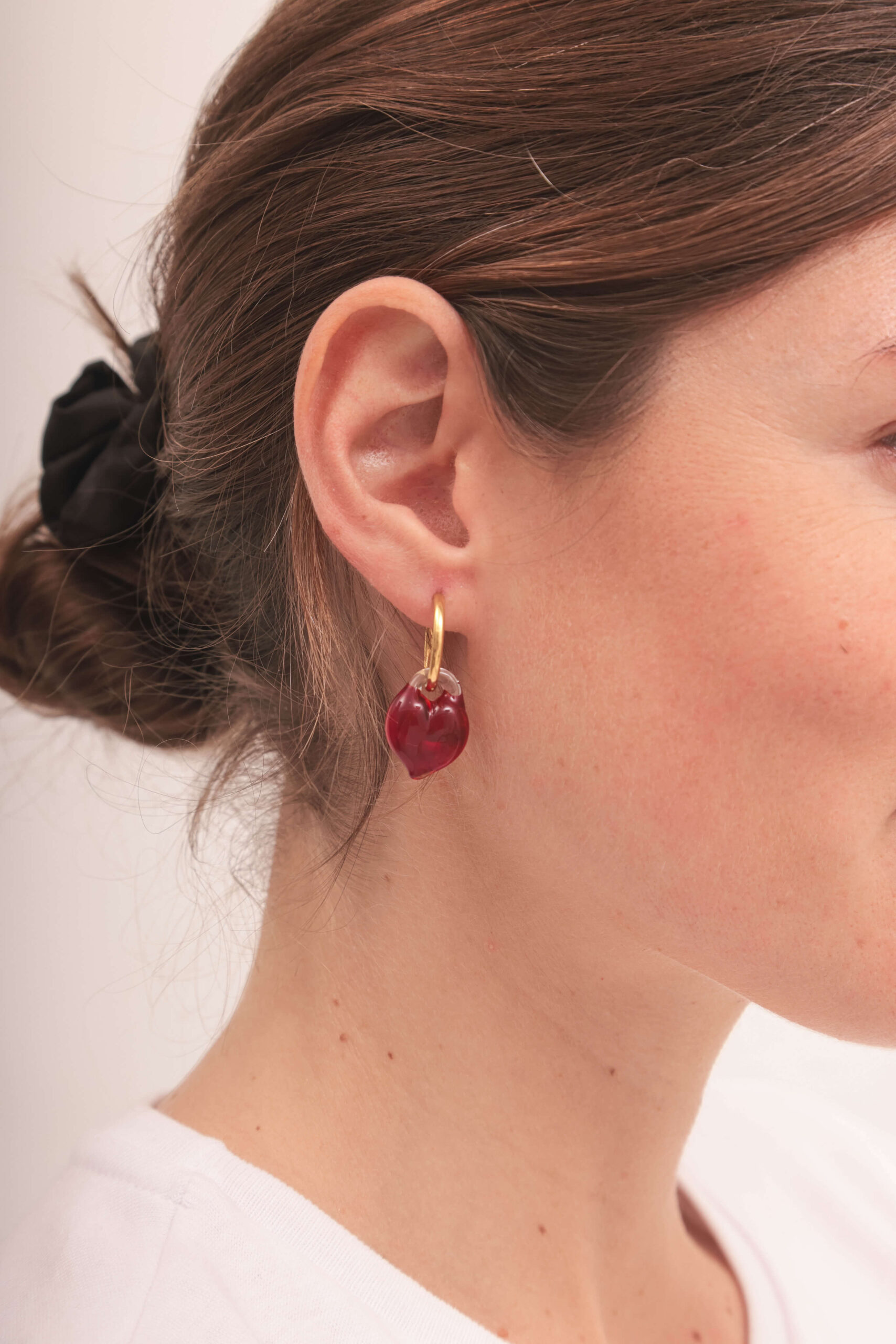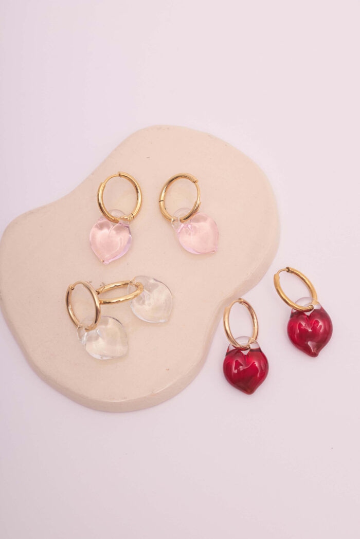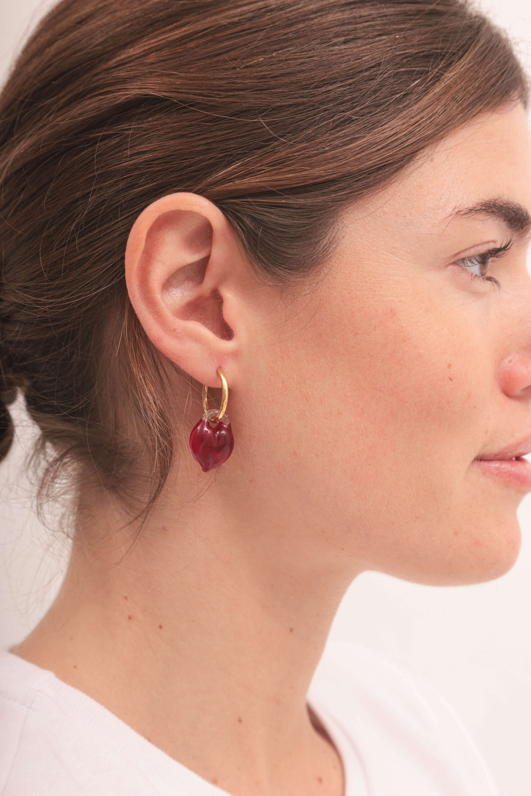 Los dijes de estos aros están hechas de manera artesanal en vidrio murano.