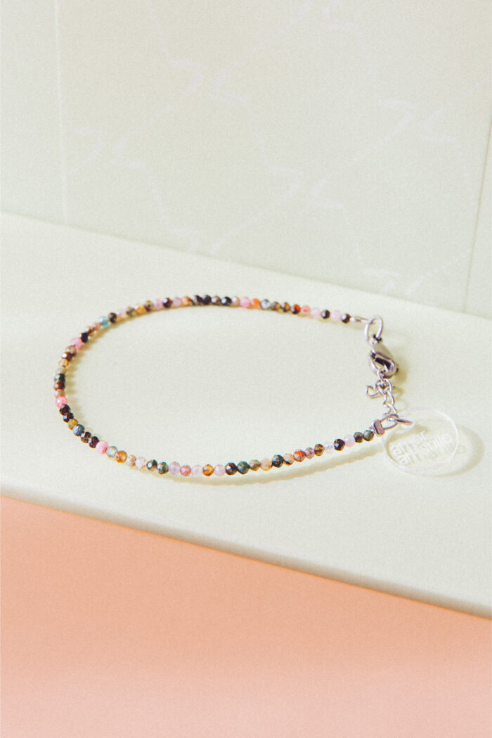 Materiales: Piedras minerales naturales ágatas, turmalina y cuarzo rosa.