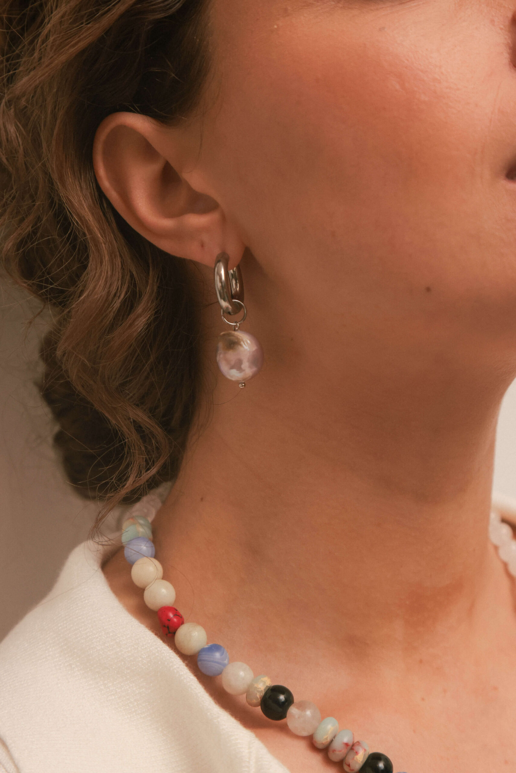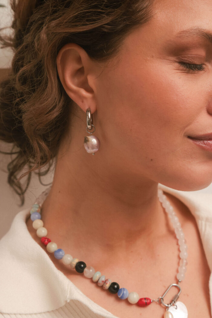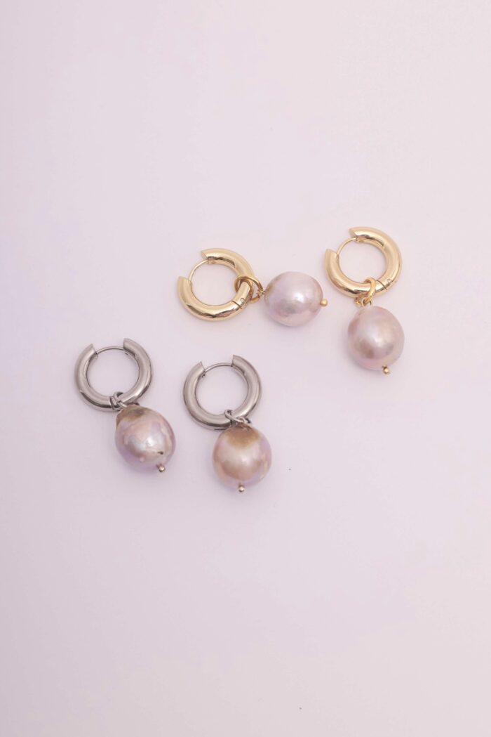 Aros. Par de argollas de acero quirúrigo y argollas de acero quirúrigo con baño dorado y perla de río.