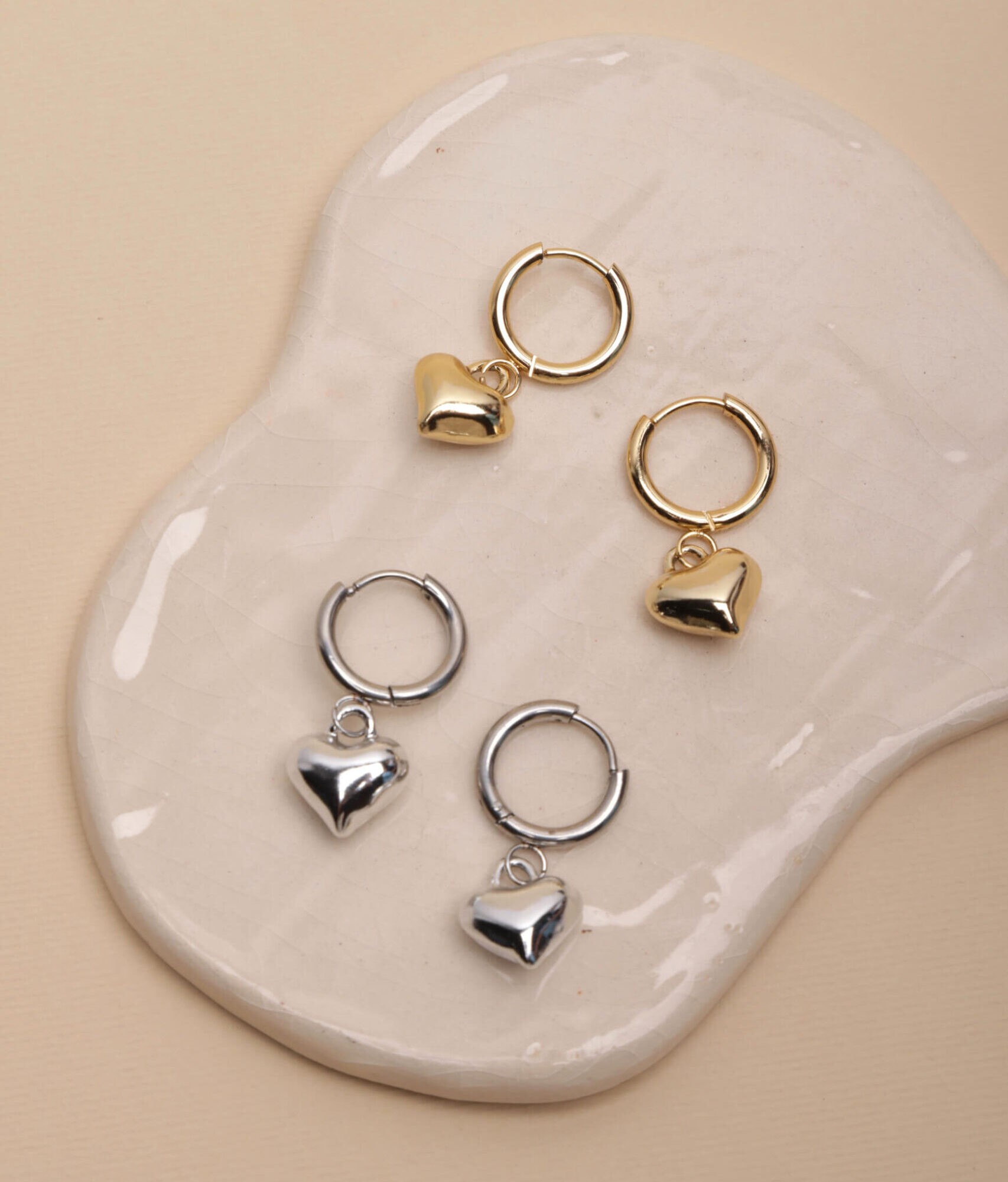 Aros. Par de argollas de acero quirúrigo con dije de corazón.