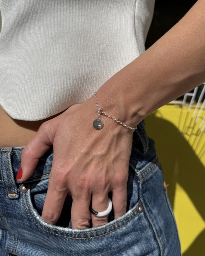 Pulsera con cadena y medalla en plata 925 con inscripción grabada «Para Siempre»