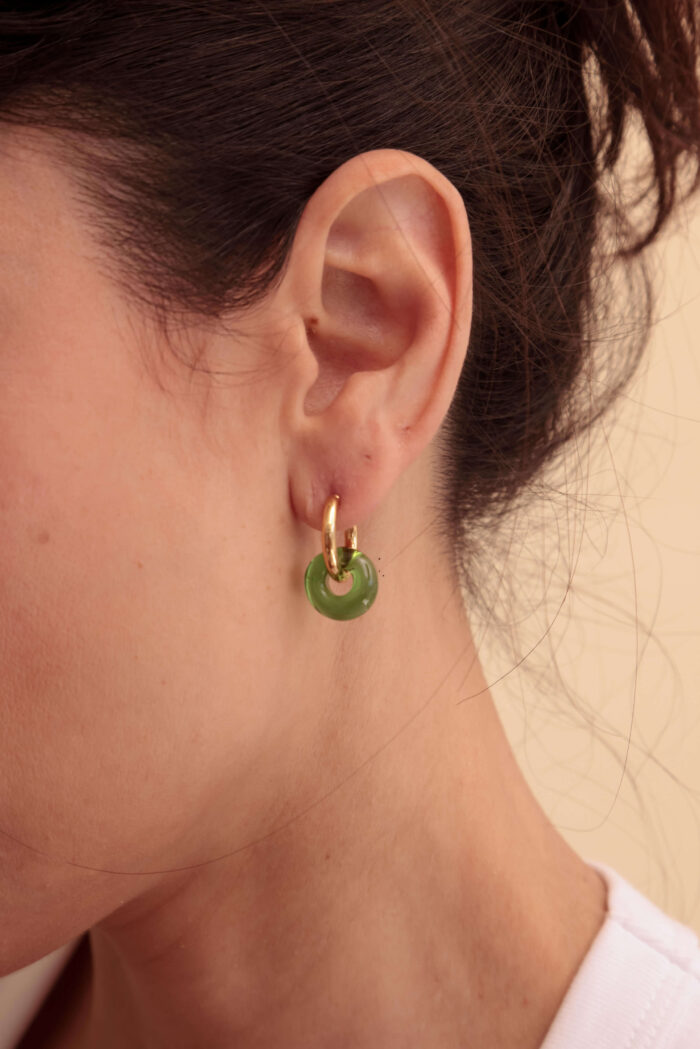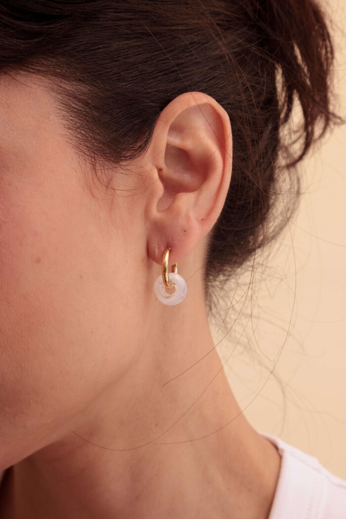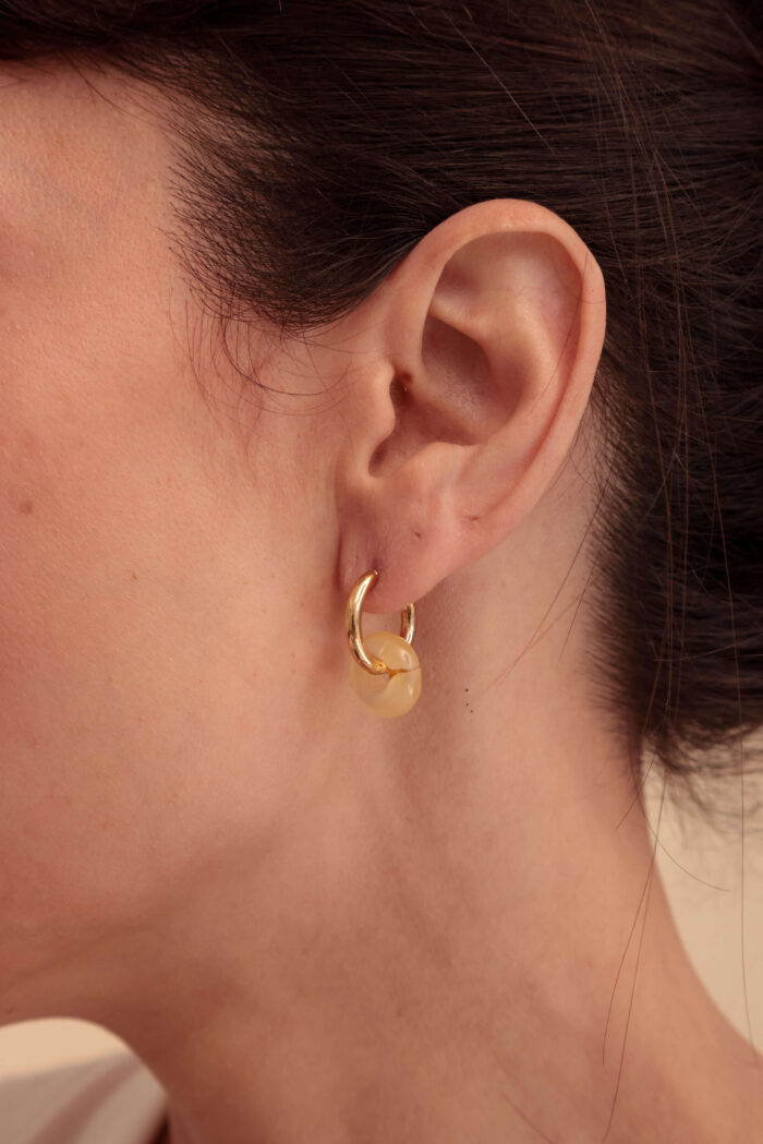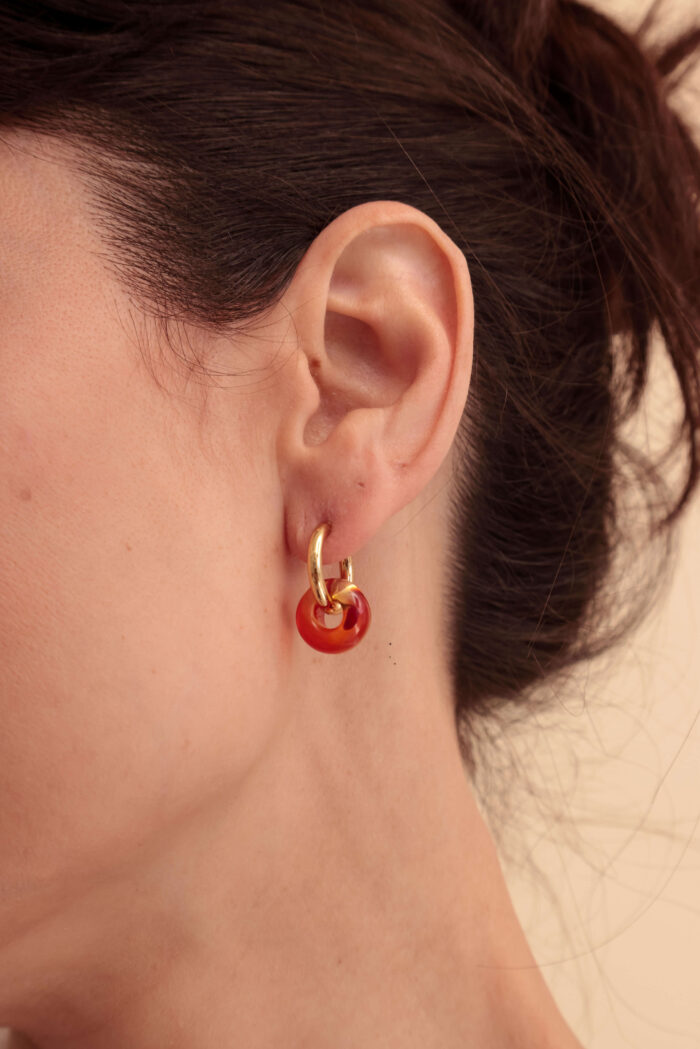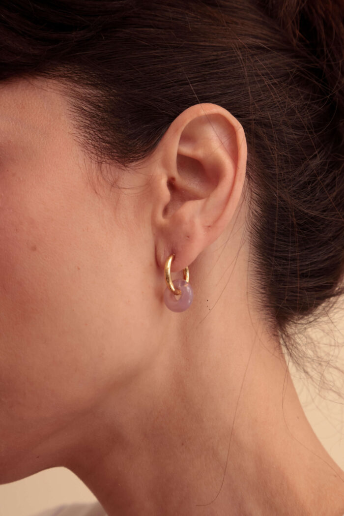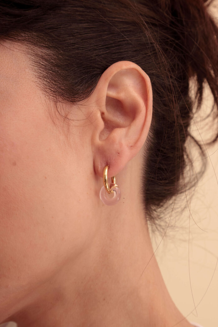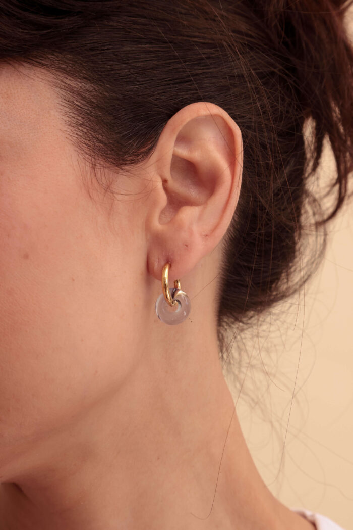 Aros. Par de argollas de acero quirúrigo con baño dorado y donas de vidrio murano.