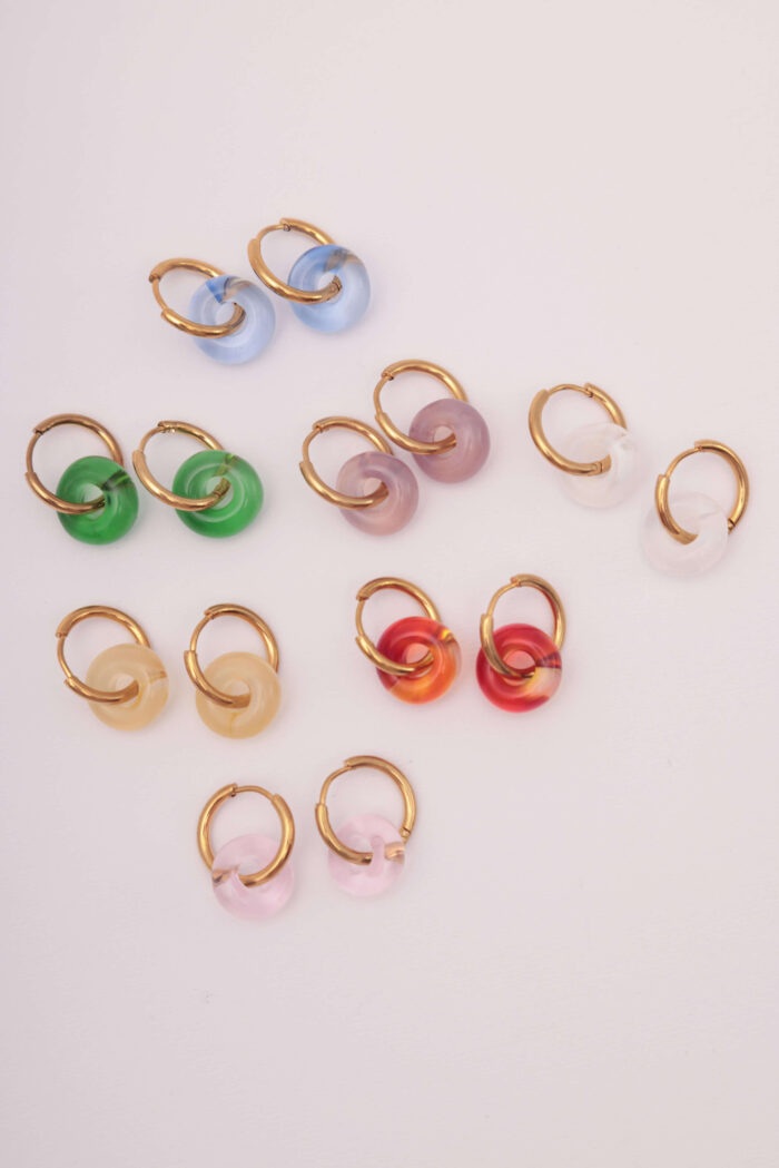 Par de argollas de aros de acero quirúrgico con donas de vidrio murano.