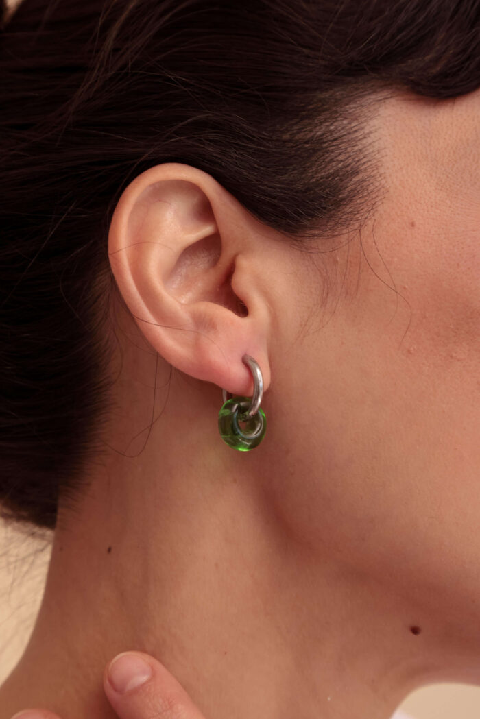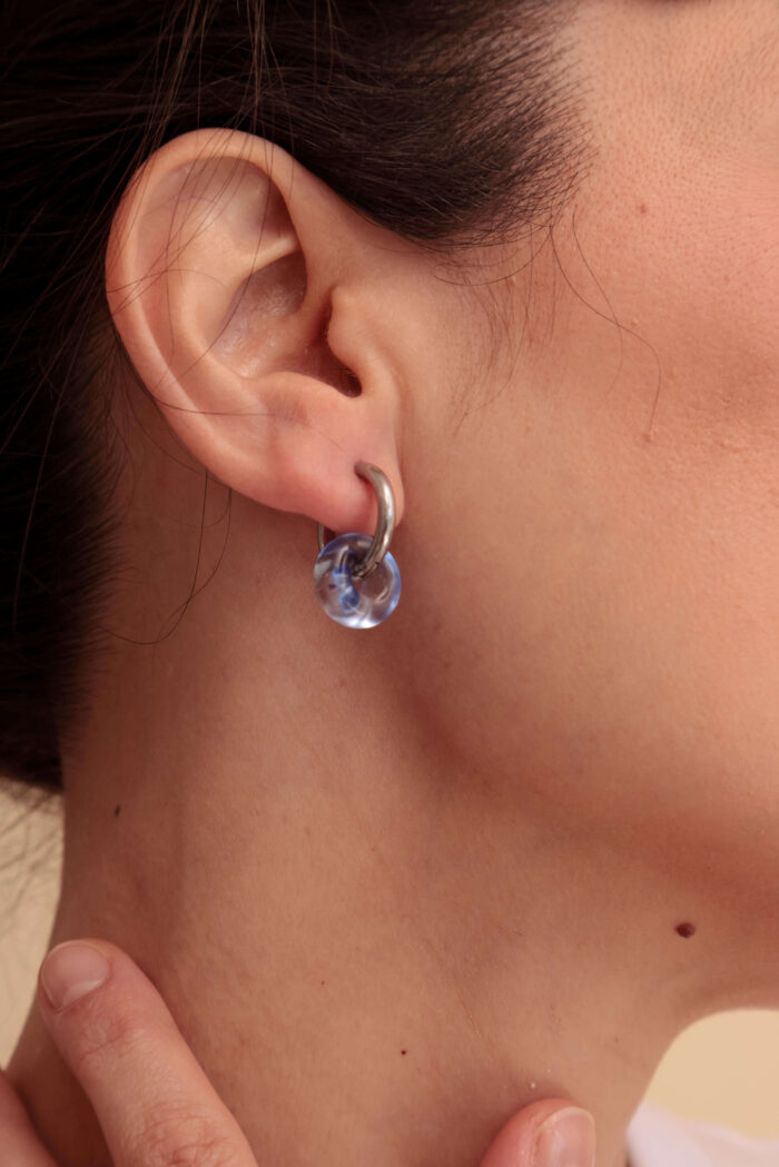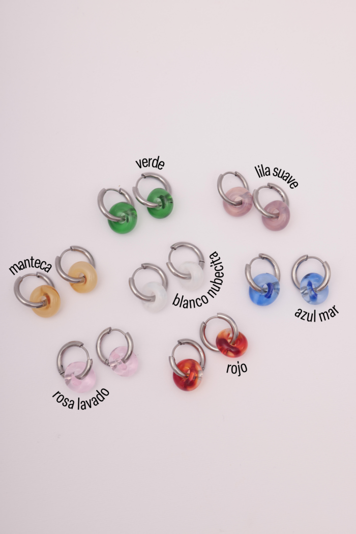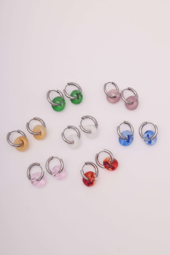 Aros. Par de argollas de acero quirúrigo y donas de vidrio murano.
