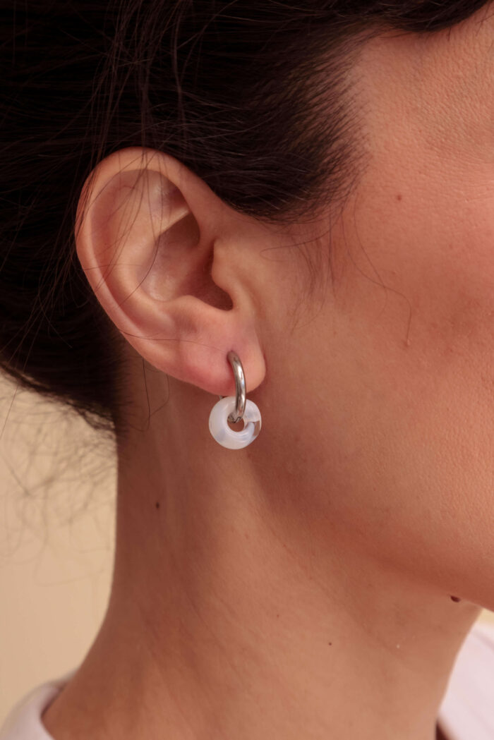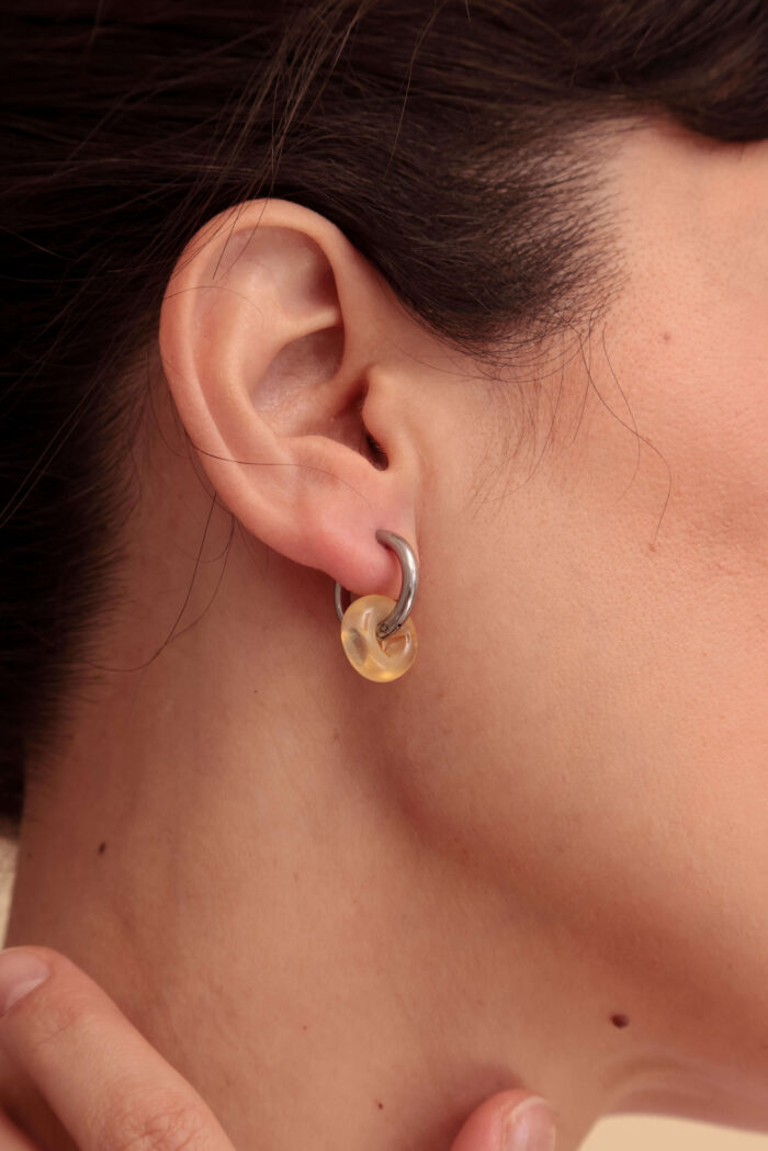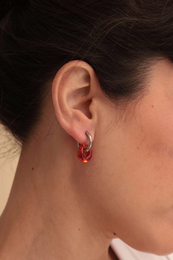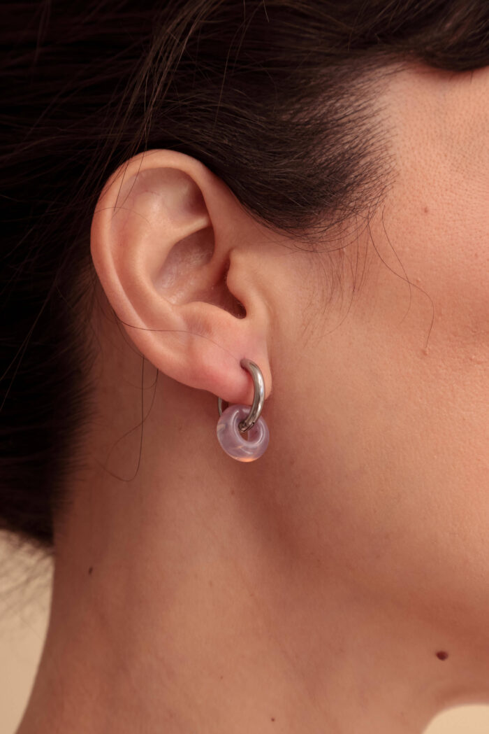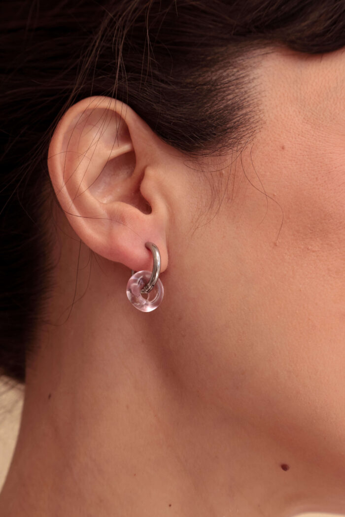 Aros. Par de argollas de acero quirúrigo y donas de vidrio murano.