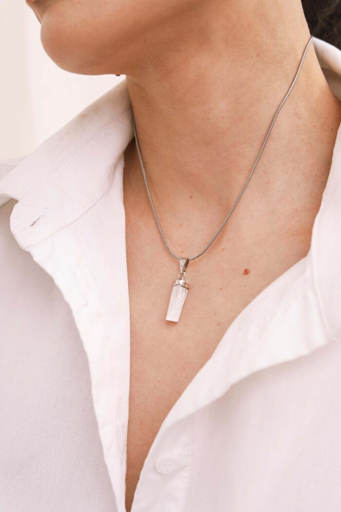 SELENITA: Infunde paz profunda y es excelente para la meditación o el trabajo espiritual.  Calma en estados de irritabilidad e hiperactividad, nos protege para que no perdamos el control.