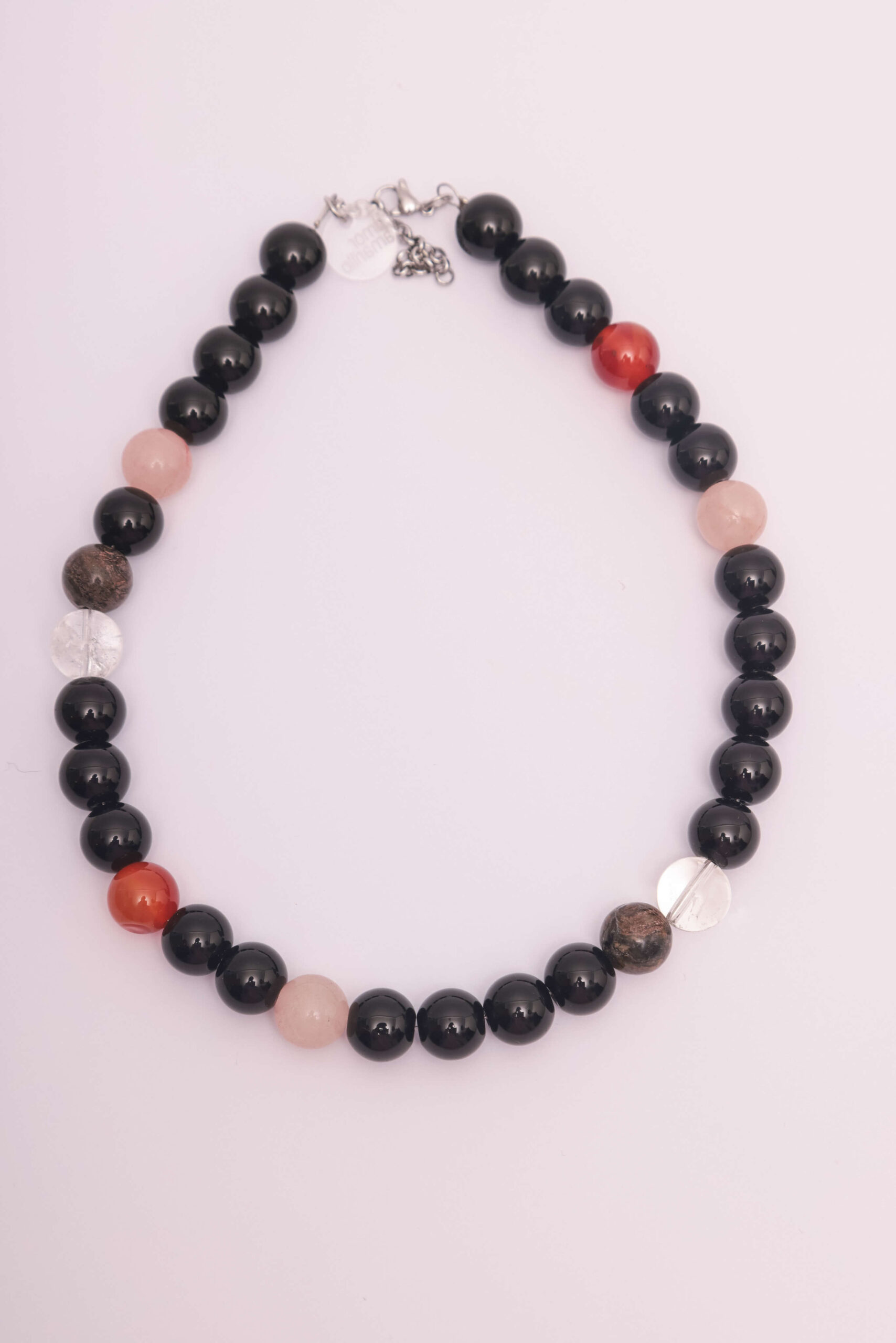 Materiales: Piedras minerales naturales onix, ágatas, cuarzo cristal y cuazo rosa.