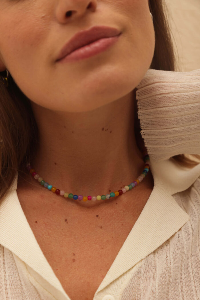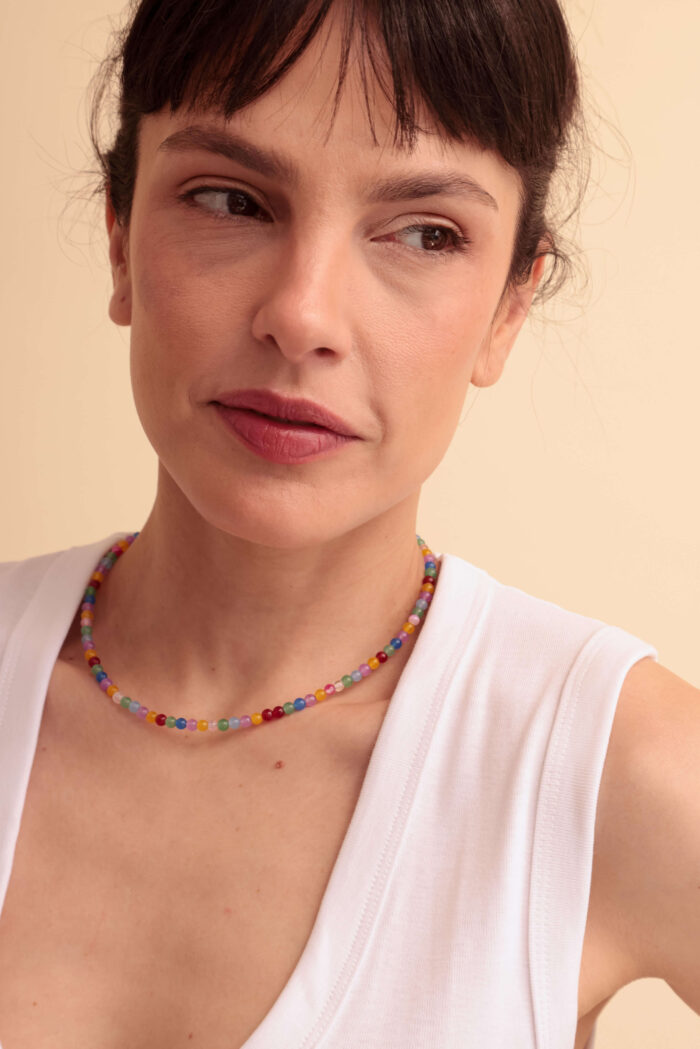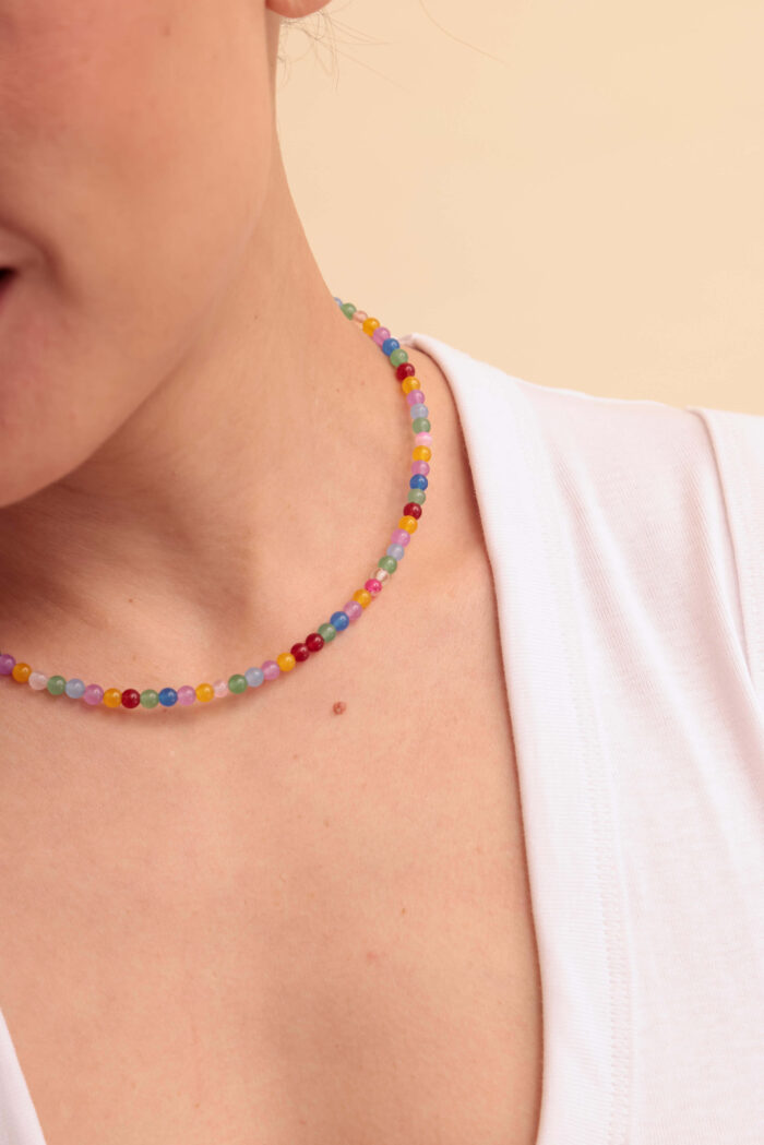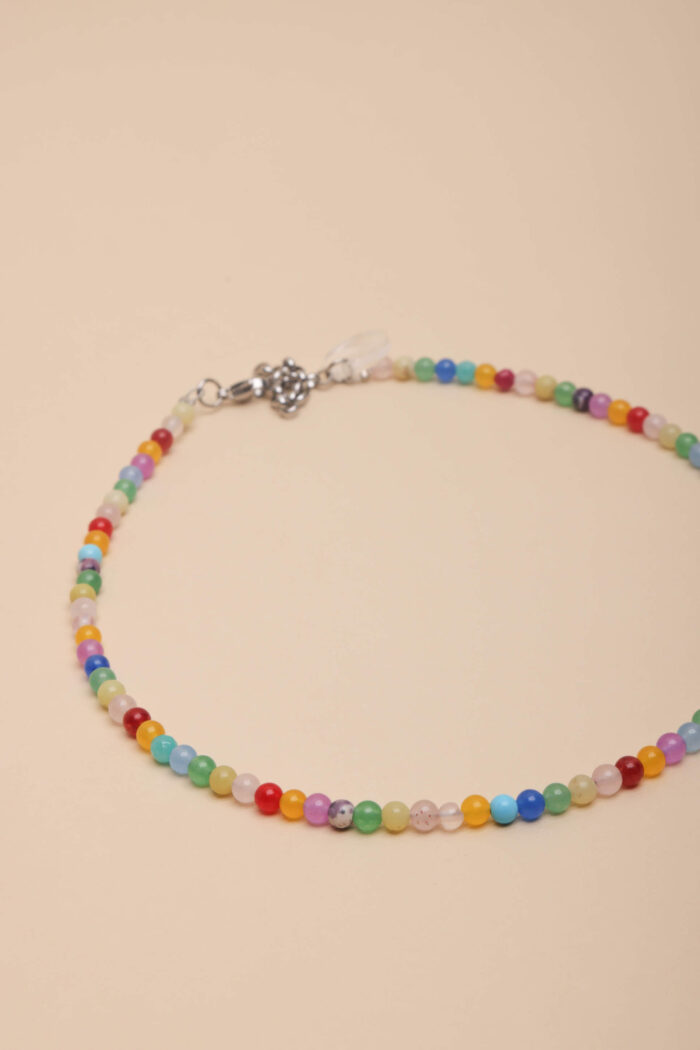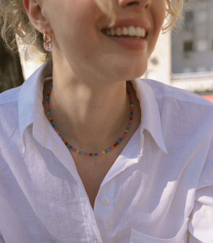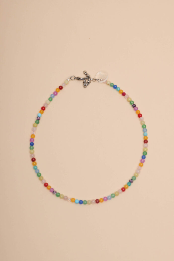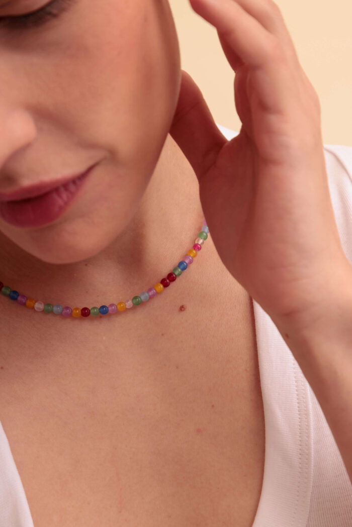 Está confeccionado artesanalmente con bolitas de ágatas minerales.