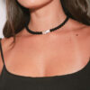 Cadena de alargue, argollas y cierre de acero quirúrgico. Chapita de la marca de acrílico.